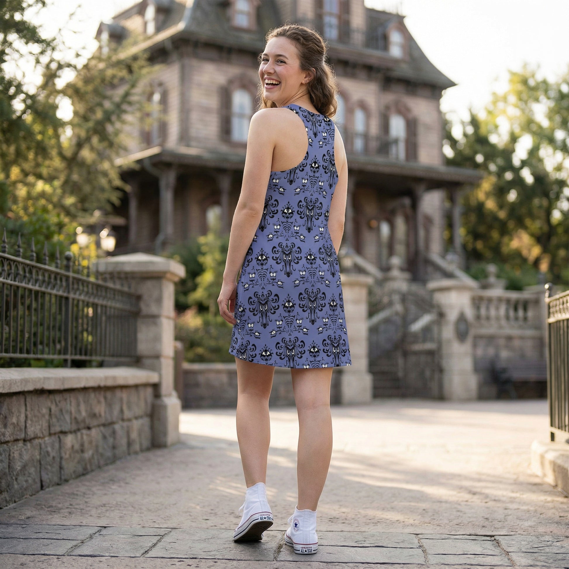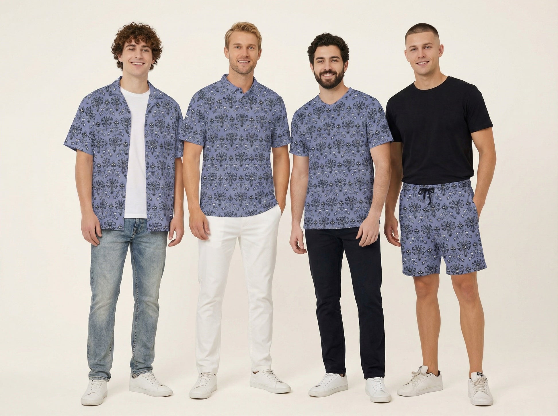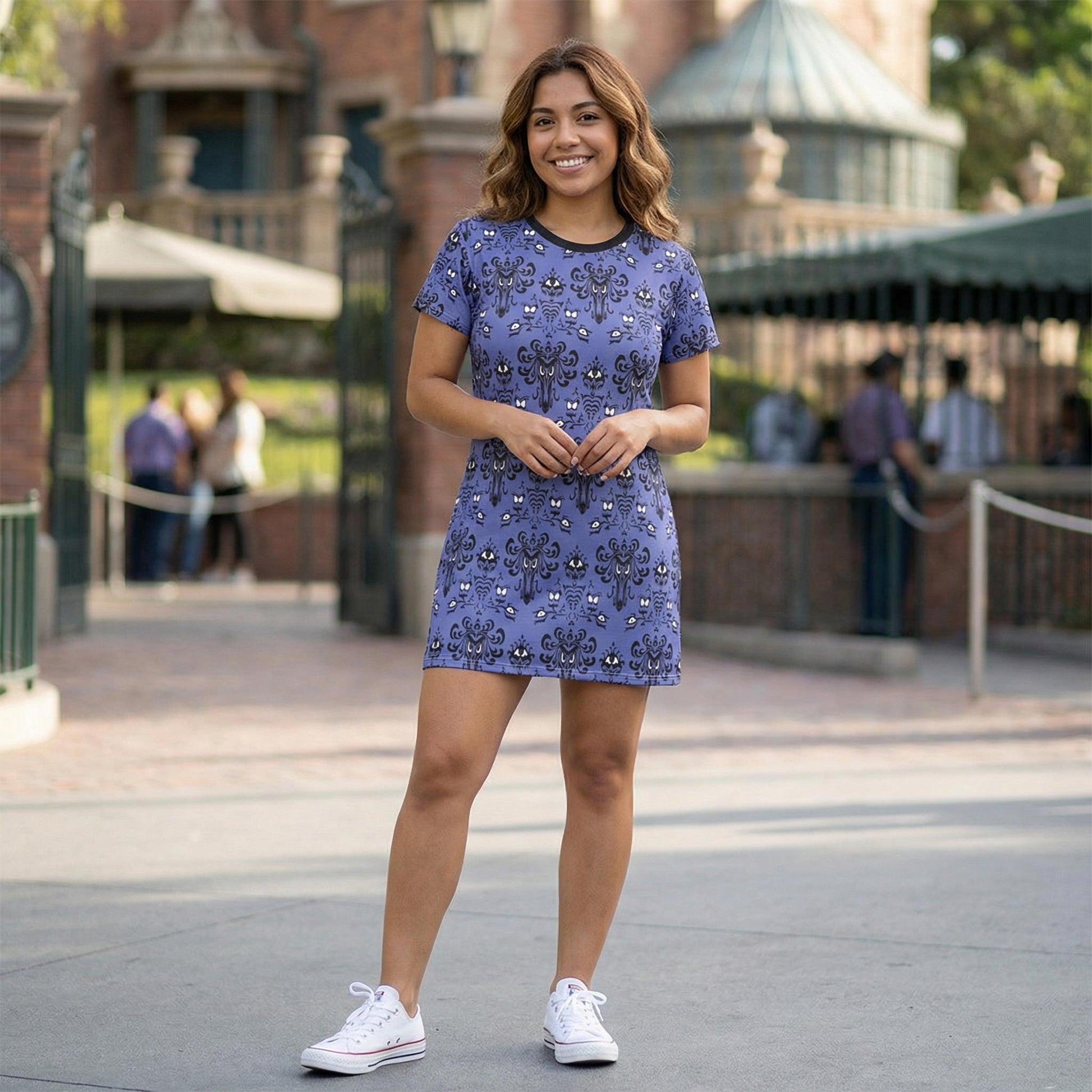 Step into spooky elegance with this iconic Victorian gothic wallpaper-inspired print! Perfect for those who want to make their visit a little more "spirited" - this design captures the essence of vintage haunted mansion aesthetics with intricate damask patterns and mysterious motifs. Whether you're planning a magical vacation or just want to add some ghostly charm to your wardrobe, this all-over seamless print brings that beloved attraction atmosphere wherever you go.