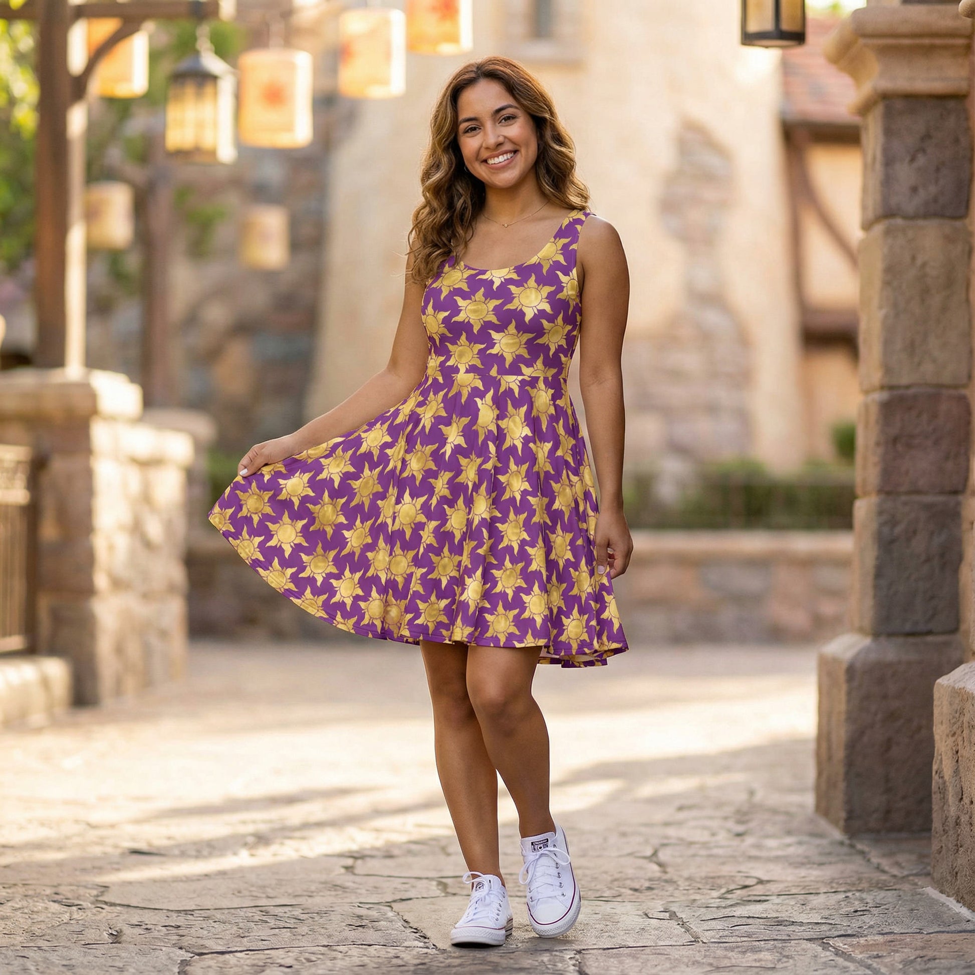 Add a touch of fairytale glow to your day with this enchanting pattern featuring golden sun symbols on a rich purple backdrop. Inspired by stories of towers, lanterns, and brave hearts, it’s perfect for anyone ready to let their light shine.