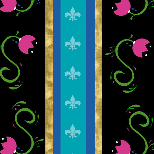 This cute pattern was inspired by the Disney movie Frozen and Scandinavian floral patterns. It shows pink flowers with stripes of gold, much like the outfit princess Anna wears!