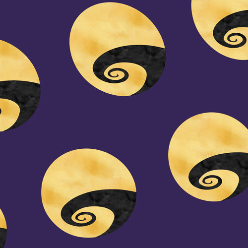 This beautiful design was inspired by the Disney movie The Nightmare Before Christmas, and depicts the famous curly hill in front of a full moon, on a deep purple background.