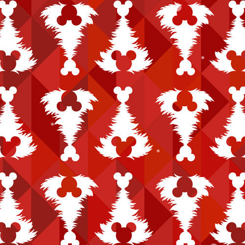 This design features snow-white Mickey Ears Christmas trees on a red geometric background. Cute for all ages and genders to get in the spirit for the holiday season!