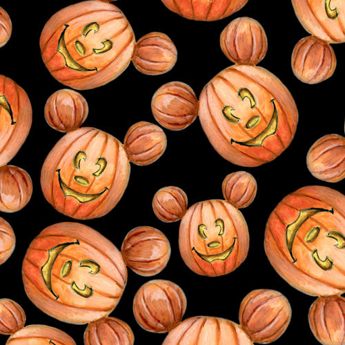 Perfect for Halloween, this print shows orange pumpkins with big grins and Mickey ears!