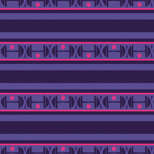 Inspired by Luisa's dumbbell skirt from the Disney hit Encanto, this pattern shows a purple and pink rows of little dumbbells.