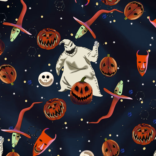 Dive into the creepy fun of Disney's The Nightmare Before Christmas with this lively design featuring Oogie Boogie and the mischievous trio Lock, Shock, and Barrel. Surrounded by grinning pumpkins, spooky masks, and eerie details, this print captures the darkly whimsical essence of Halloween Town. A perfect homage to the film's most devious characters!