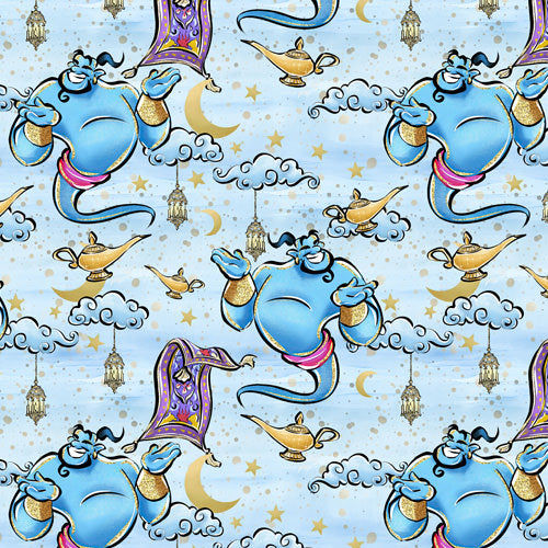 This print features Genie and Magic Carpet from Disney's Aladdin in an adorable whimsical hand-drawn style!