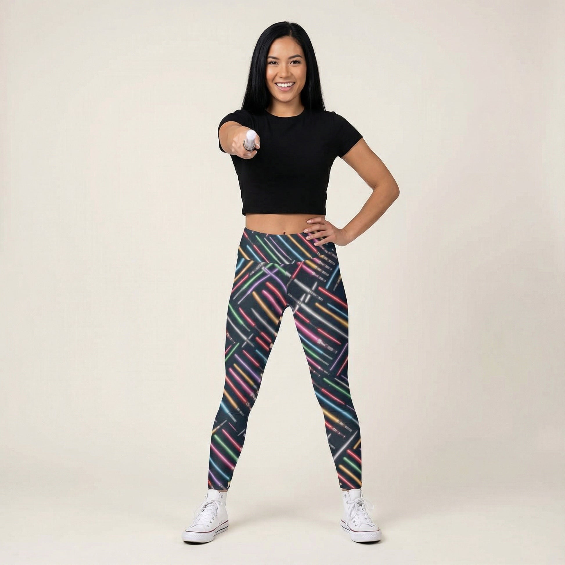 Illuminate your style with this electrifying design showcasing an array of glowing sabers in bold, vibrant colors against a deep starry backdrop. Whether you’re drawn to the light, the dark, or somewhere in between, this pattern captures the energy of a galaxy brimming with epic legends.