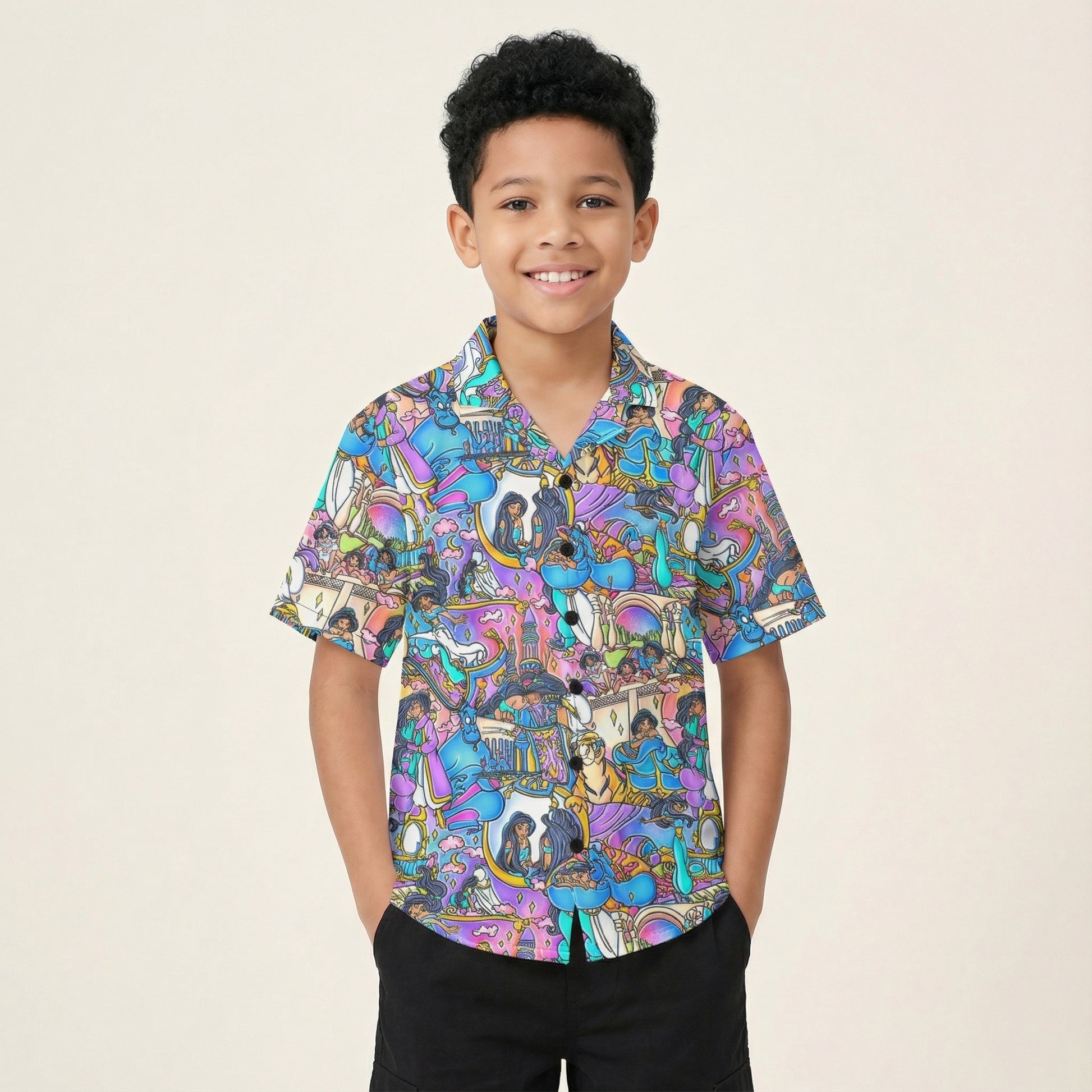Magic Carpet Storybook Scenes - Kid's Hawaiian Button Up Shirt