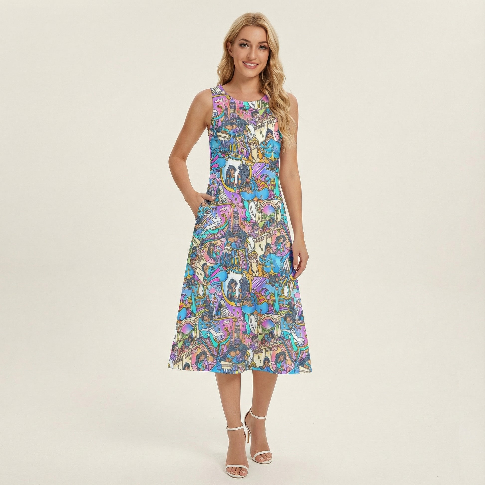 Magic Carpet Storybook Scenes - Women’s Diagonal Pocket Midi Dress