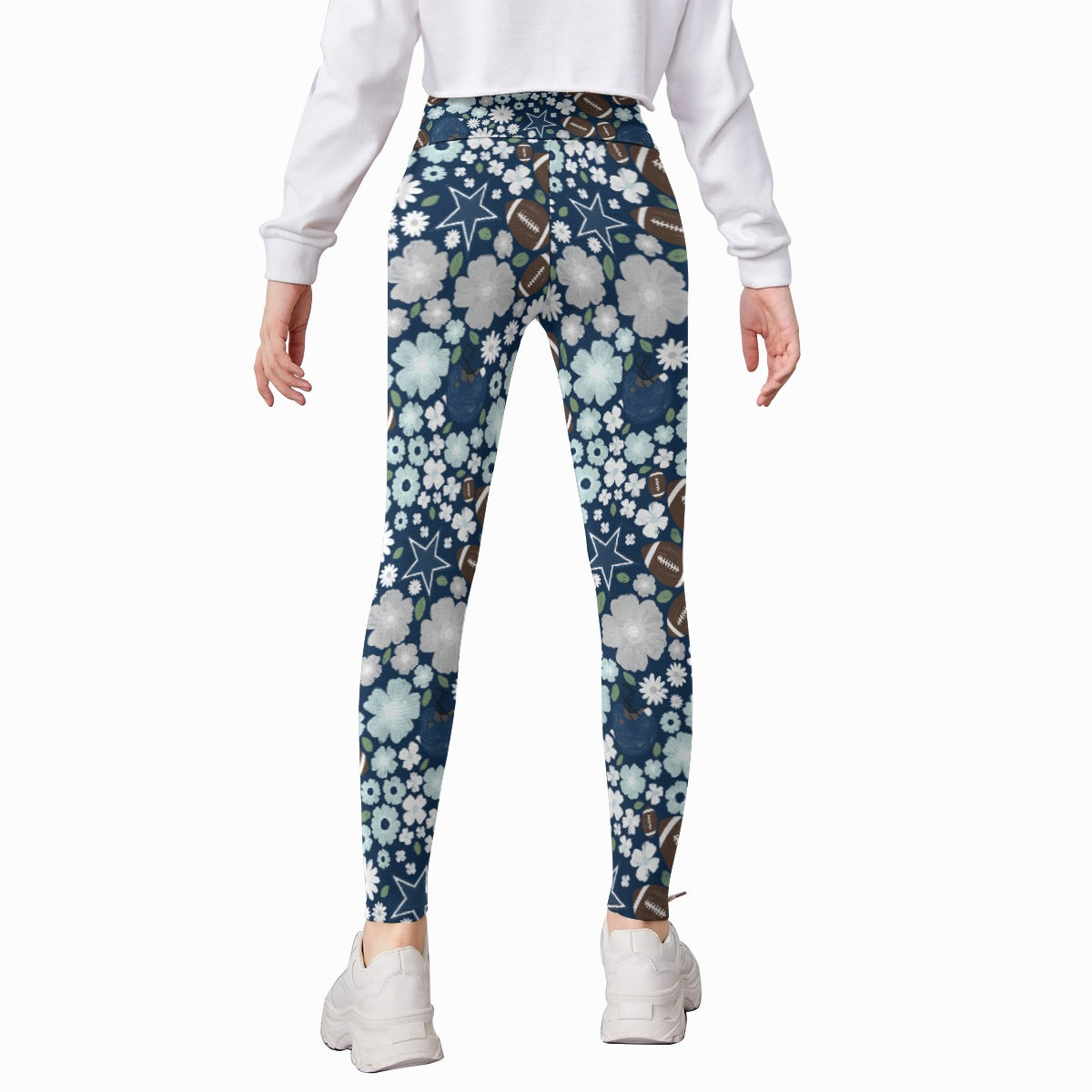 Game day just got a whole lot prettier! This pattern combines iconic navy and white with soft, painterly florals in white, pale blue, and sage green. Footballs and a legendary star emblem are scattered throughout the blooms, giving it that perfect balance of sporty and feminine. The hand-painted watercolor style on a deep navy background makes it feel fresh, bold, and ready for tailgates, watch parties, or just showing off your team pride in style. It's tough, it's pretty, and it's 100% fan-ready.