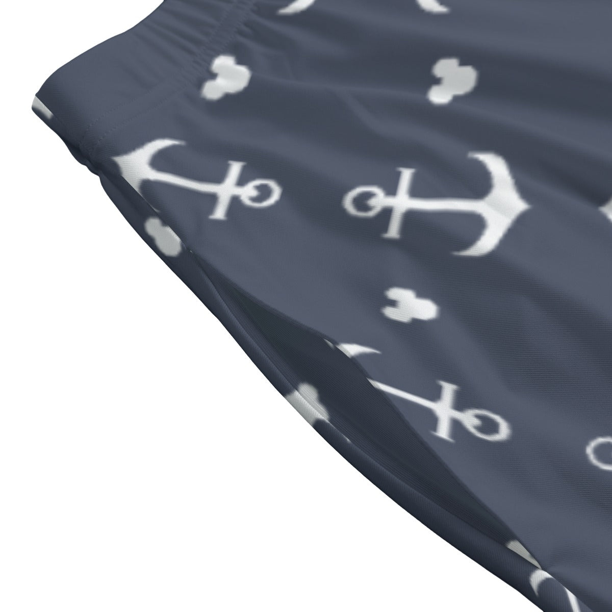 Set sail in style with this charming nautical design featuring crisp white anchors and playful mouse ear shapes on a deep navy backdrop. Perfect for anyone dreaming of ocean adventures with a sprinkle of cheerful magic and seafaring whimsy.