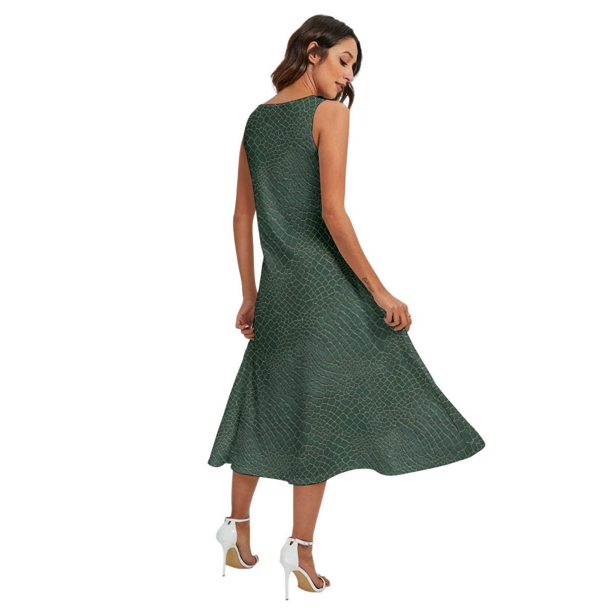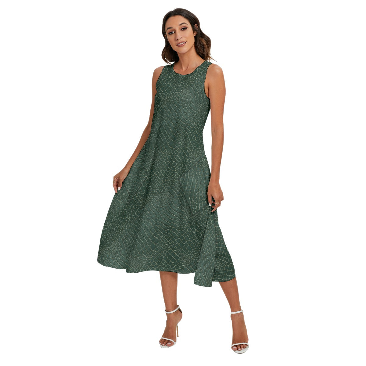 Animal Print - Alligator - Women’s Diagonal Pocket Midi Dress