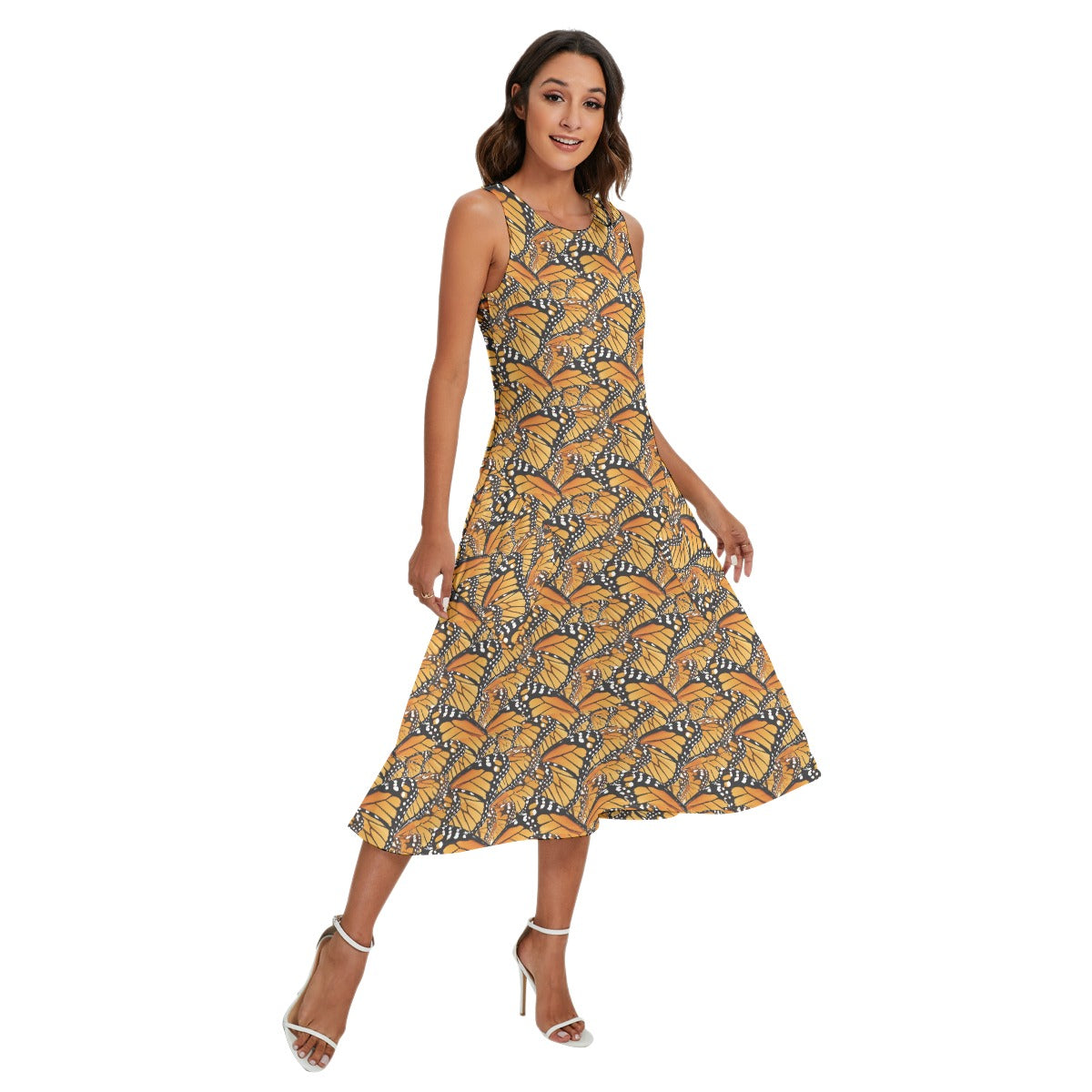 Animal Print - Monarch Butterfly - Women’s Diagonal Pocket Midi Dress