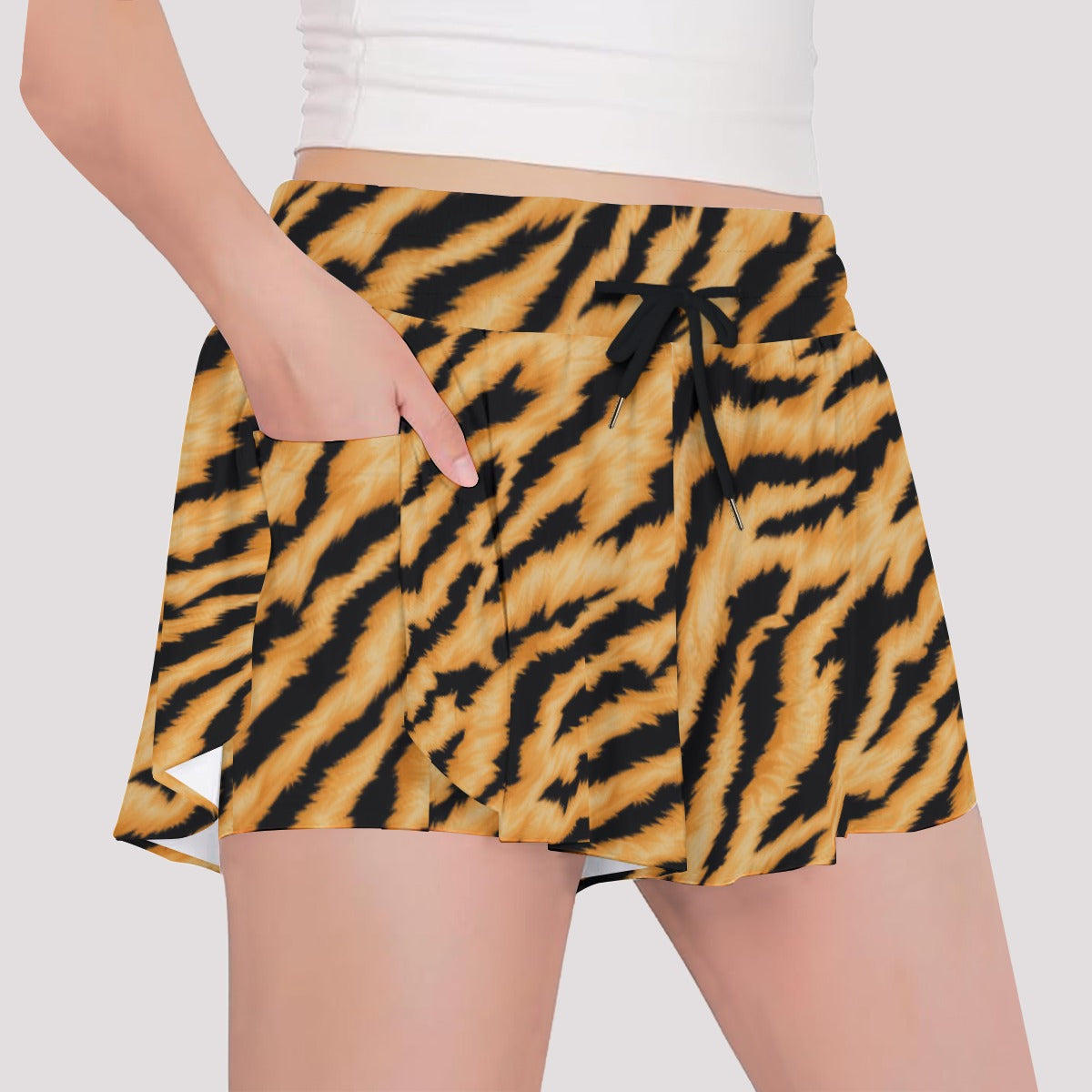 Animal Print - Tiger - Girls’ Flowy Pocket Shorts