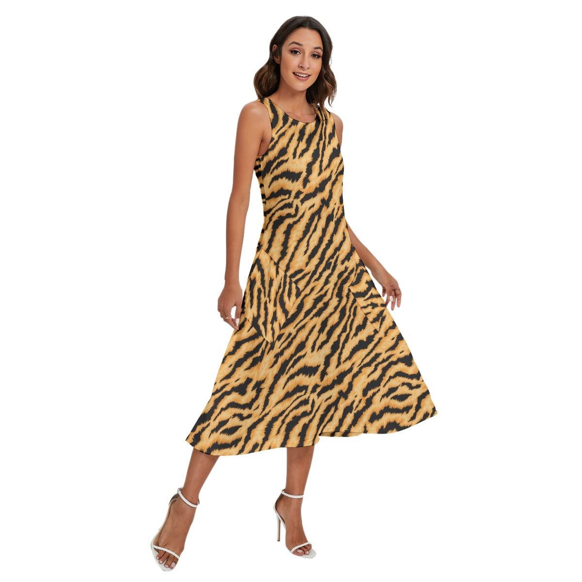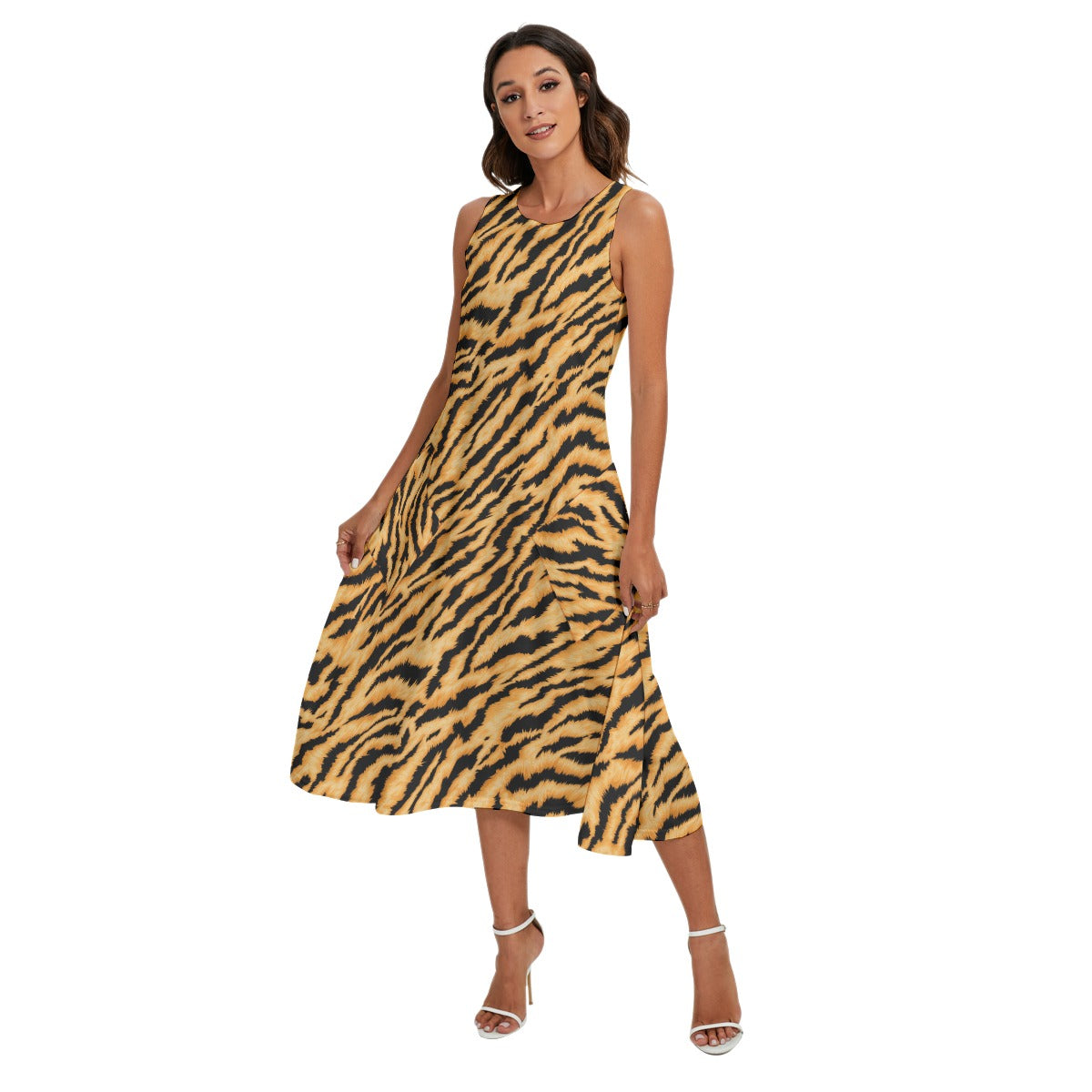 Animal Print - Tiger - Women’s Diagonal Pocket Midi Dress