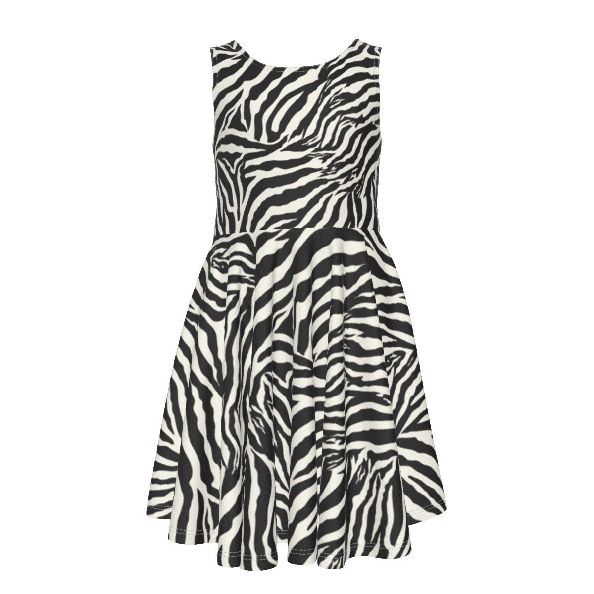 Animal Print - Zebra - Kid's Sleeveless Skater Dress