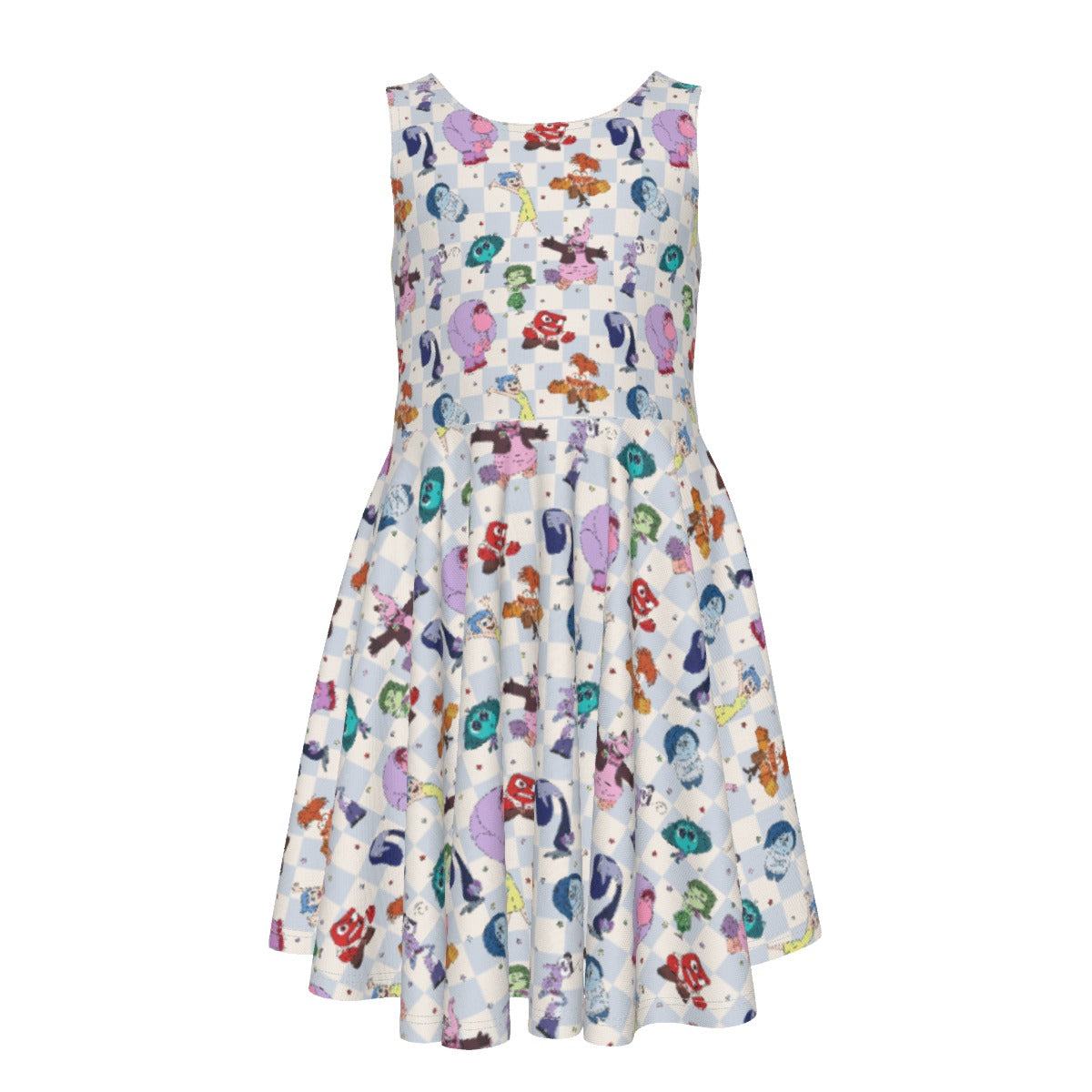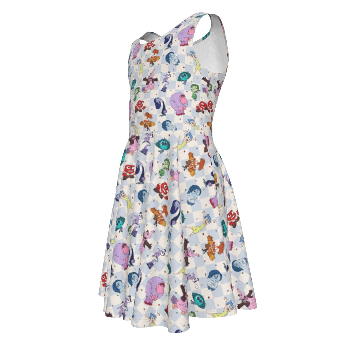 Blue Check Emotional Spectrum - Kid's Sleeveless Skater Dress