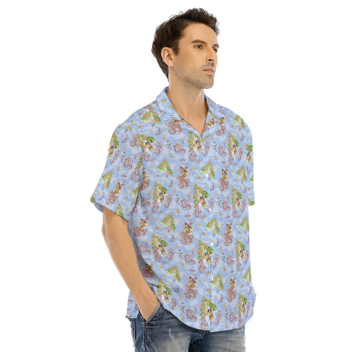 Soft, breathable, and designed for effortless style — our Men’s Hawaiian Button Up Shirt is perfect for warm days, bold prints, and casual charm. It features a clean, classic fit (not too tight, not too loose), with short sleeves, a camp-style collar, and a full button front.