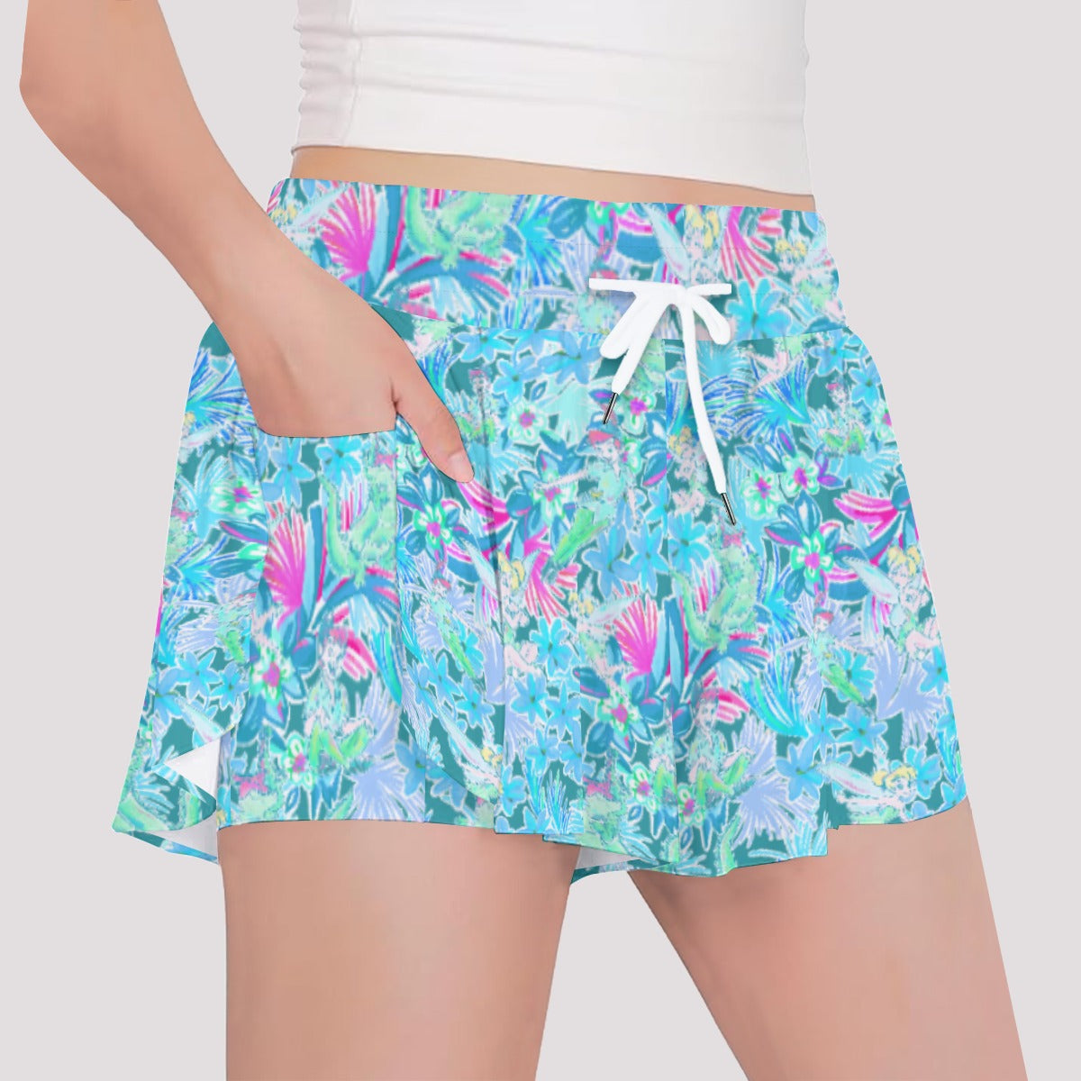 Bright Floral Flight - Neverland Adventure - Girls’ Flowy Pocket Shorts