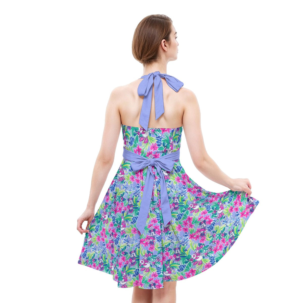 Bright Tropical Bliss - Island Mouse Duo - Women's Halter Vintage Pocket Dress