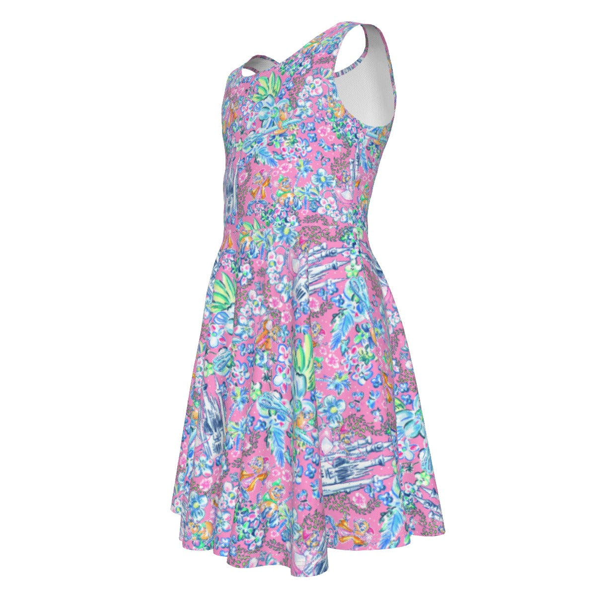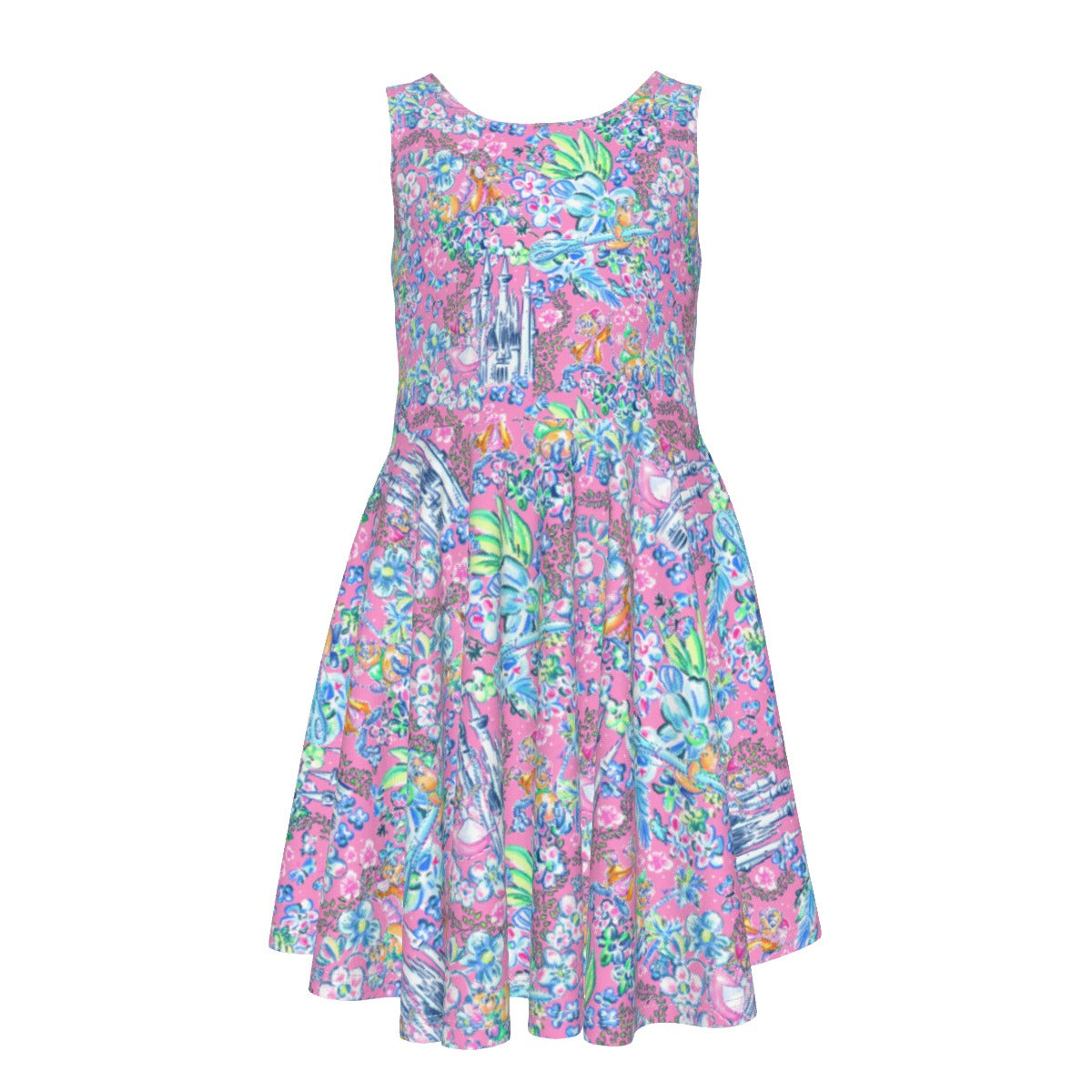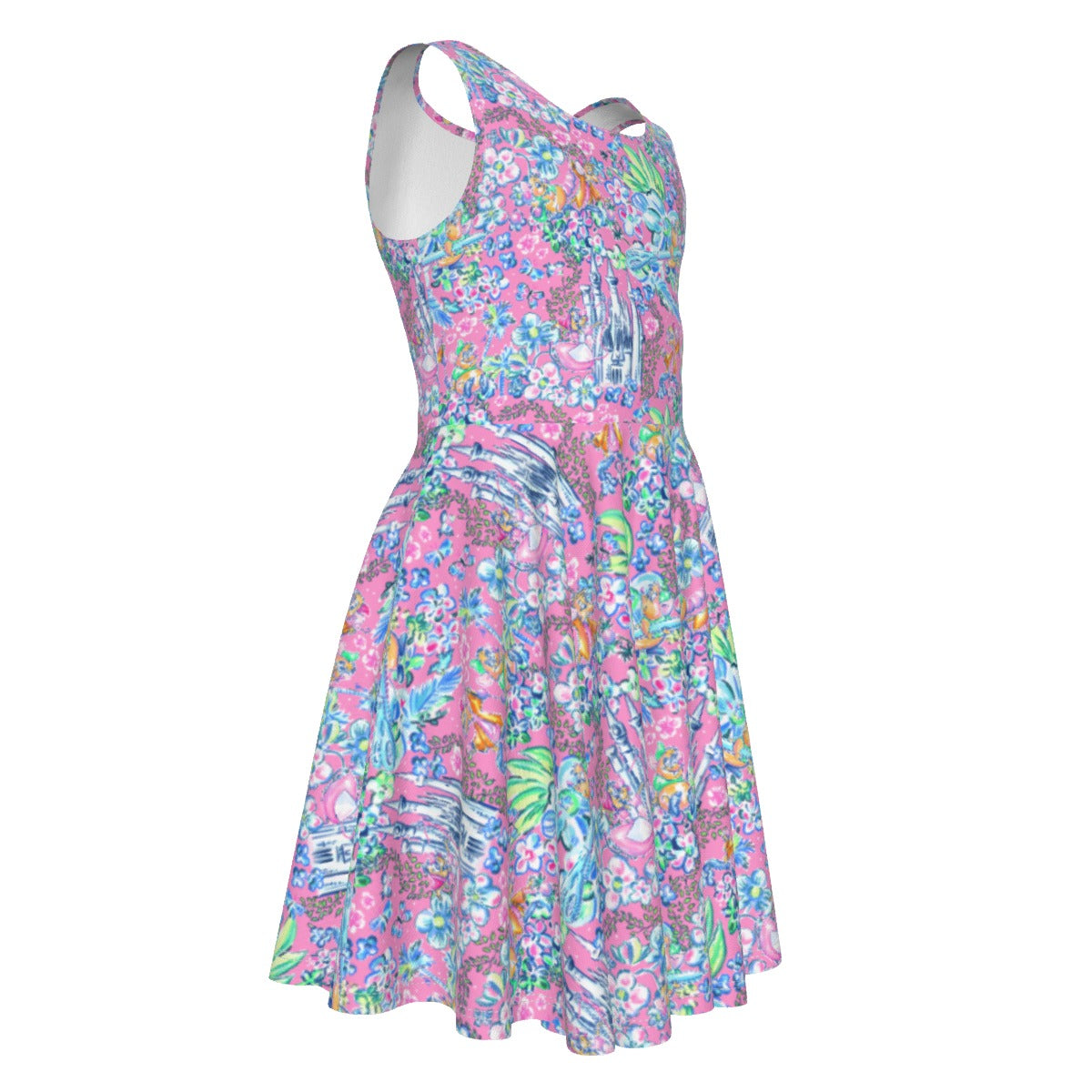 Bright Tropical Dreams - Enchanted Squeaky Helpers - Kid's Sleeveless Skater Dress