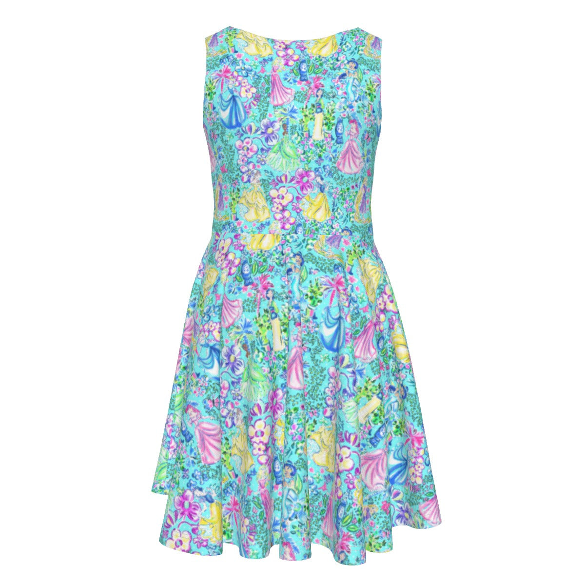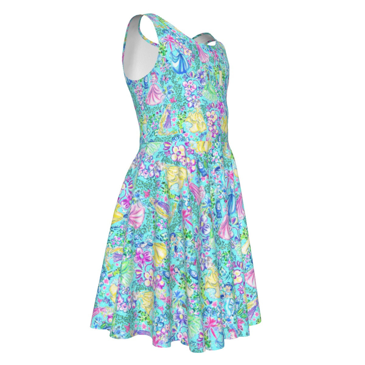 Bright Tropical Princess - Royal Garden Mashup - Kid's Sleeveless Skater Dress