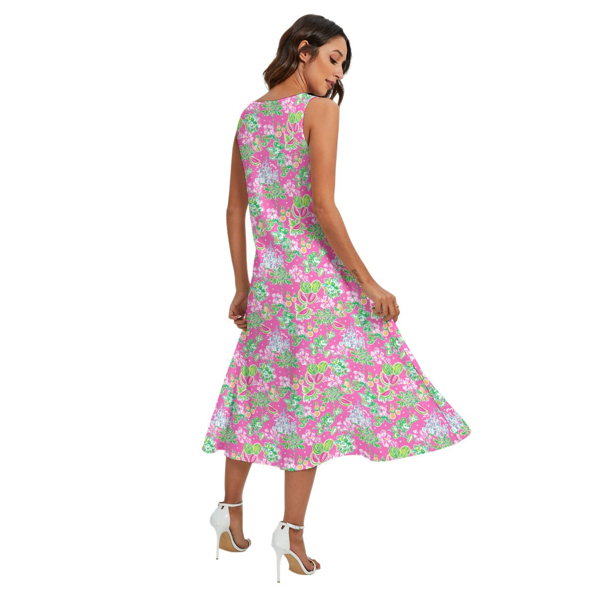 Bright Tropical Vibes - Watermelon Mouse Duo - Women’s Diagonal Pocket Midi Dress