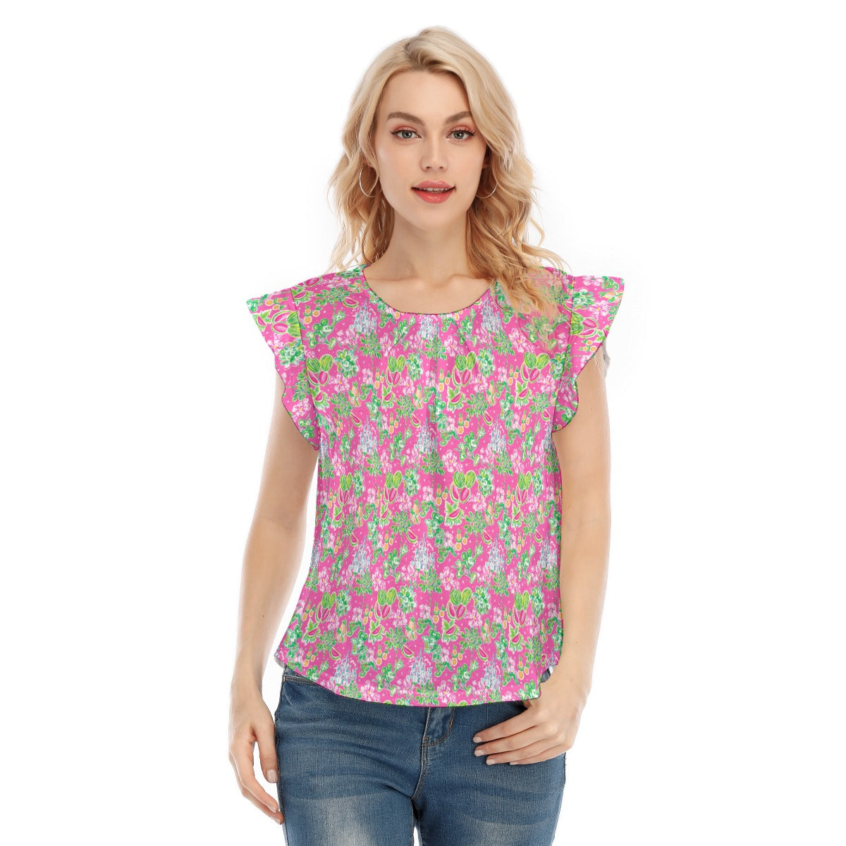 Bright Tropical Vibes - Watermelon Mouse Duo - Women’s Flutter Sleeve Top