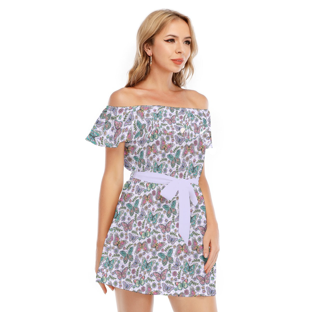 Butterfly Magic - Women's Off-shoulder Ruffle Dress