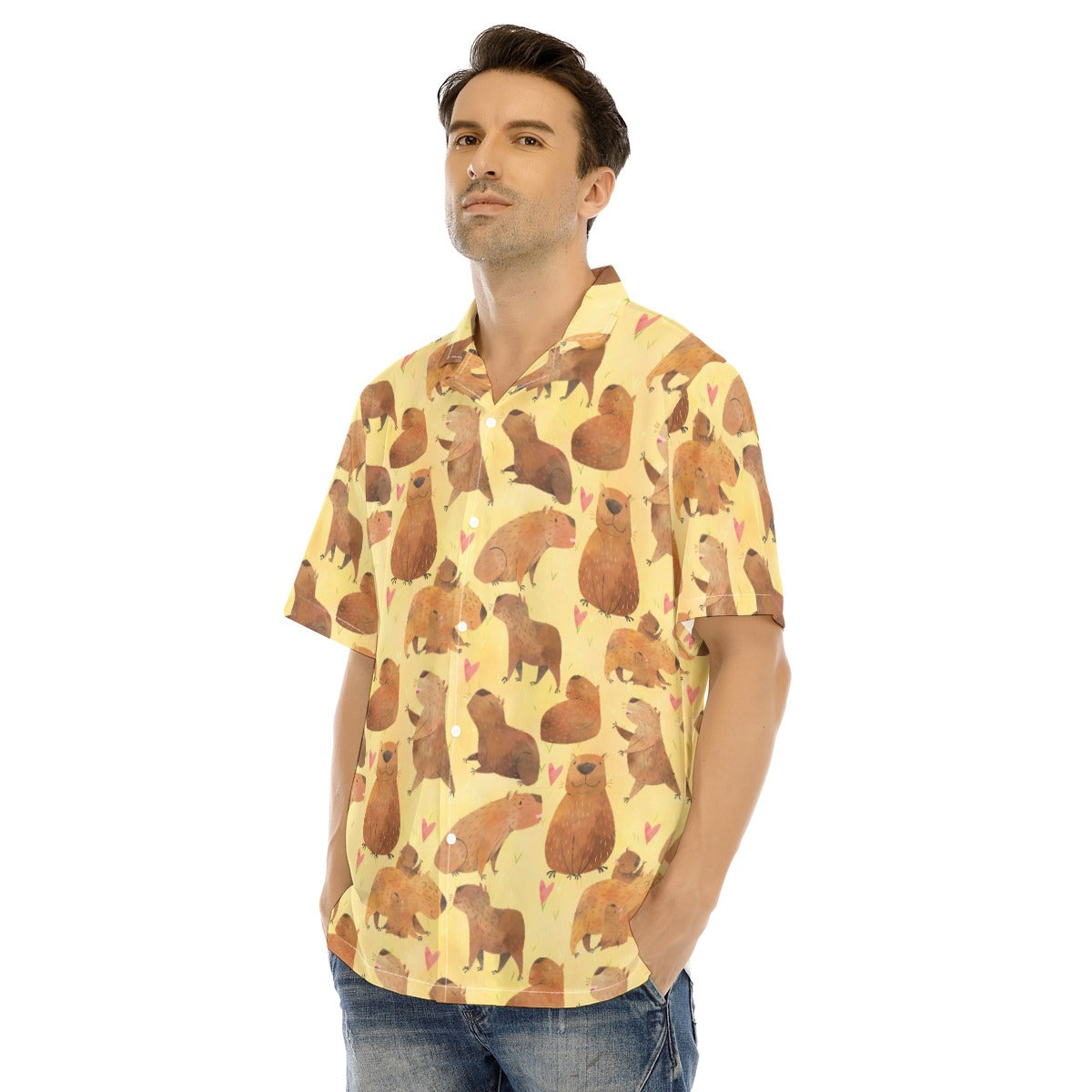 Capybara Love - Men's Hawaiian Button Up Shirt
