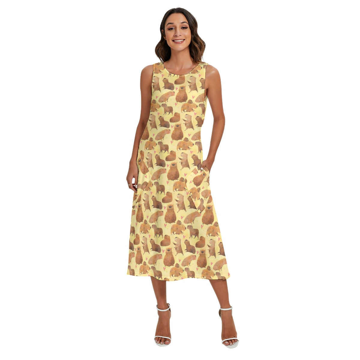 Capybara Love - Women’s Diagonal Pocket Midi Dress