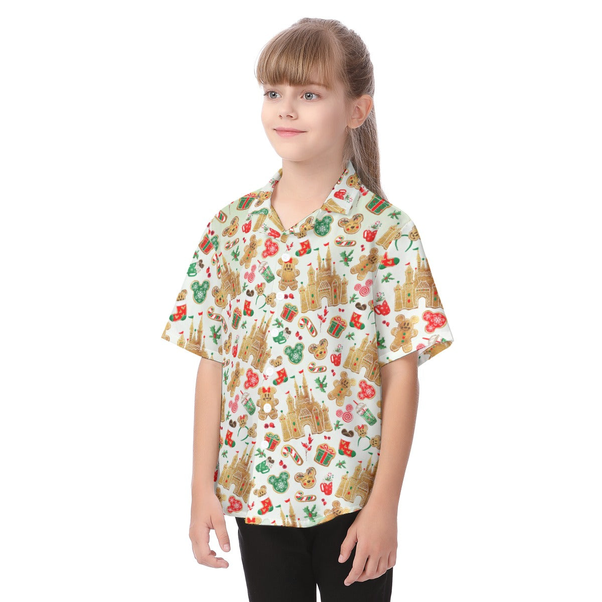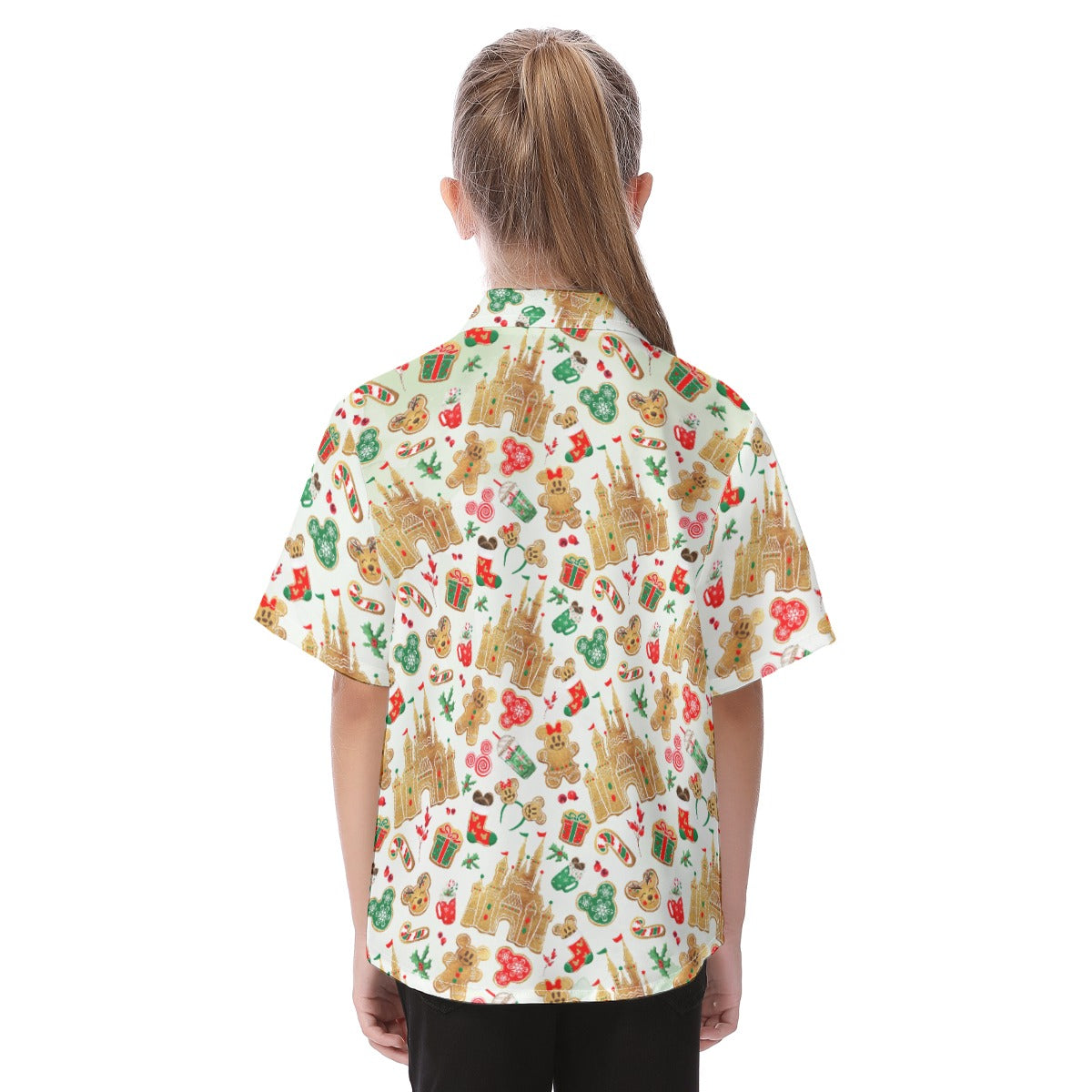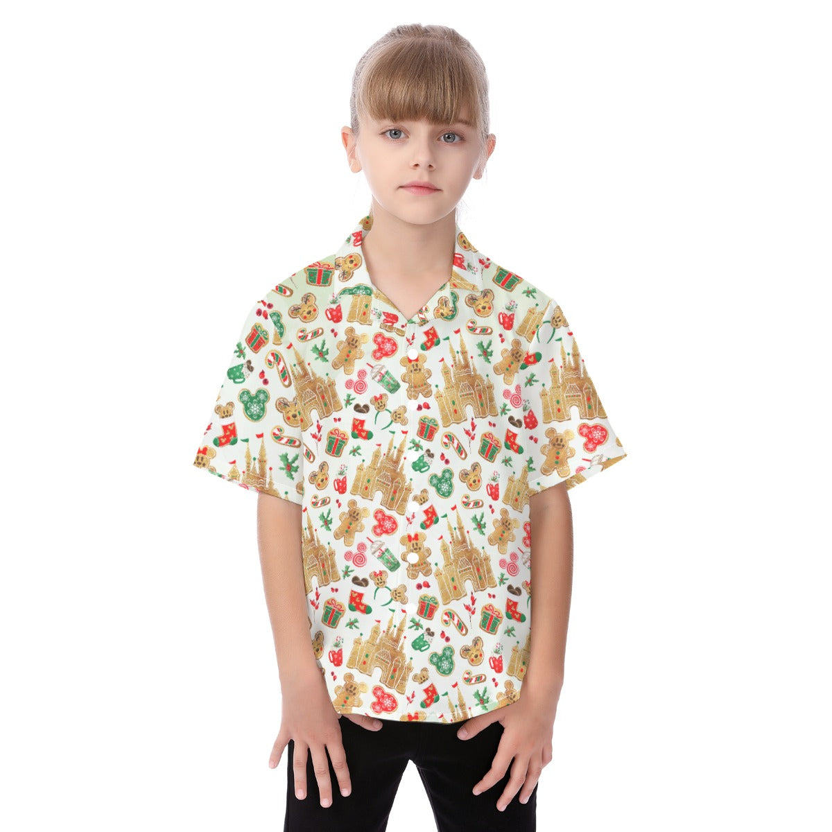 Gingerbread Castle Holiday Treats - Kid's Hawaiian Button Up Shirt