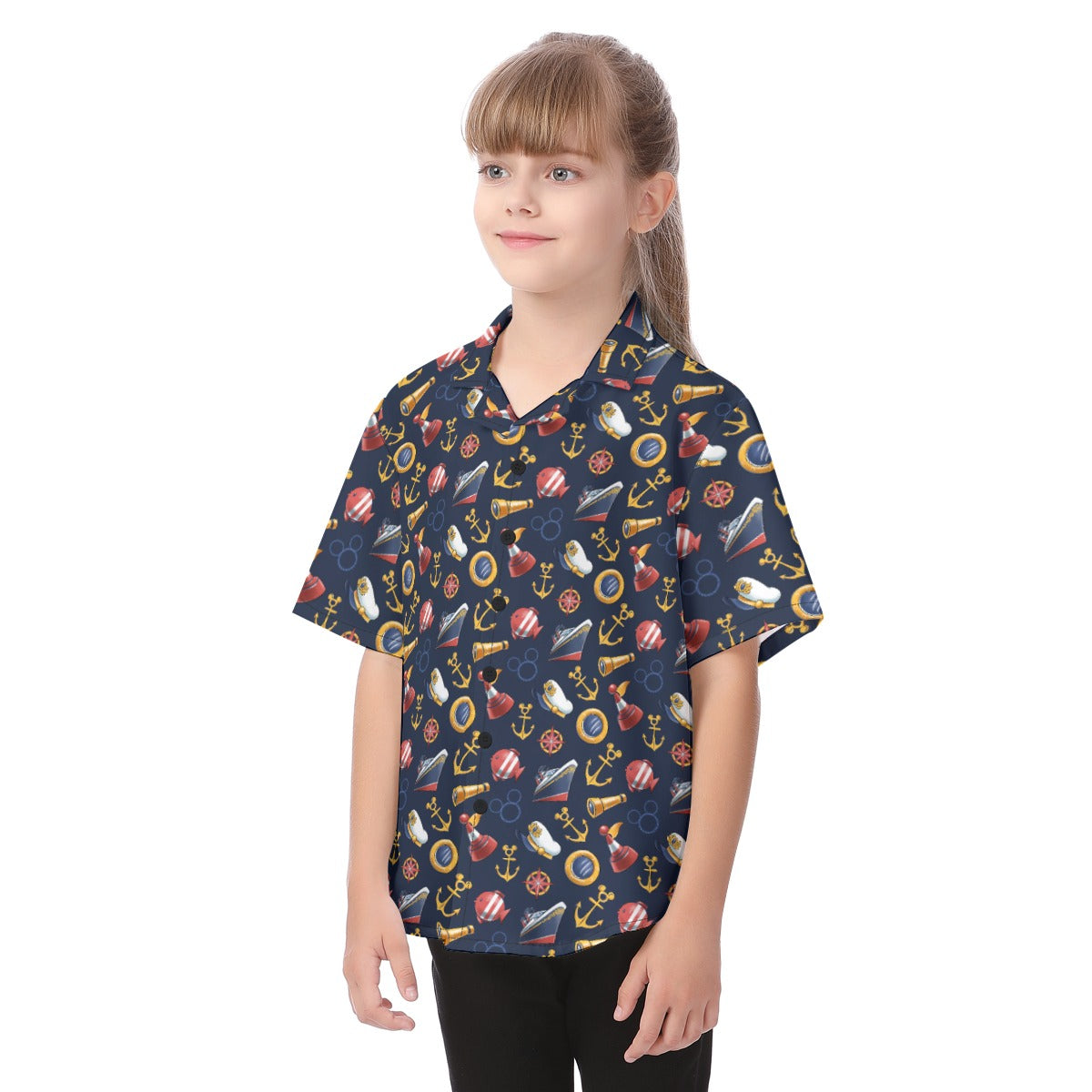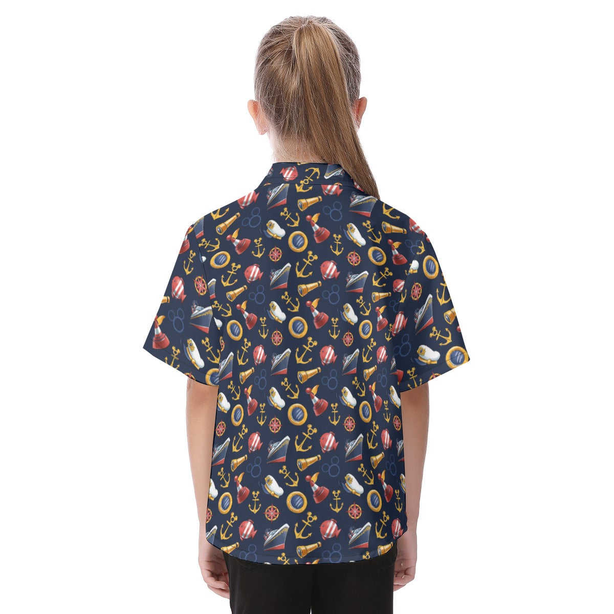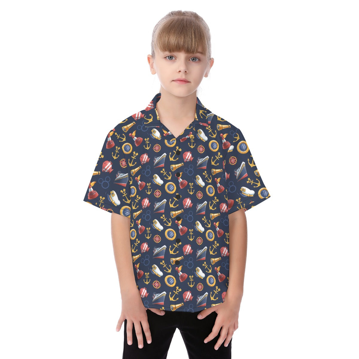 Mouse Ear Nautical Icons - Kid's Hawaiian Button Up Shirt