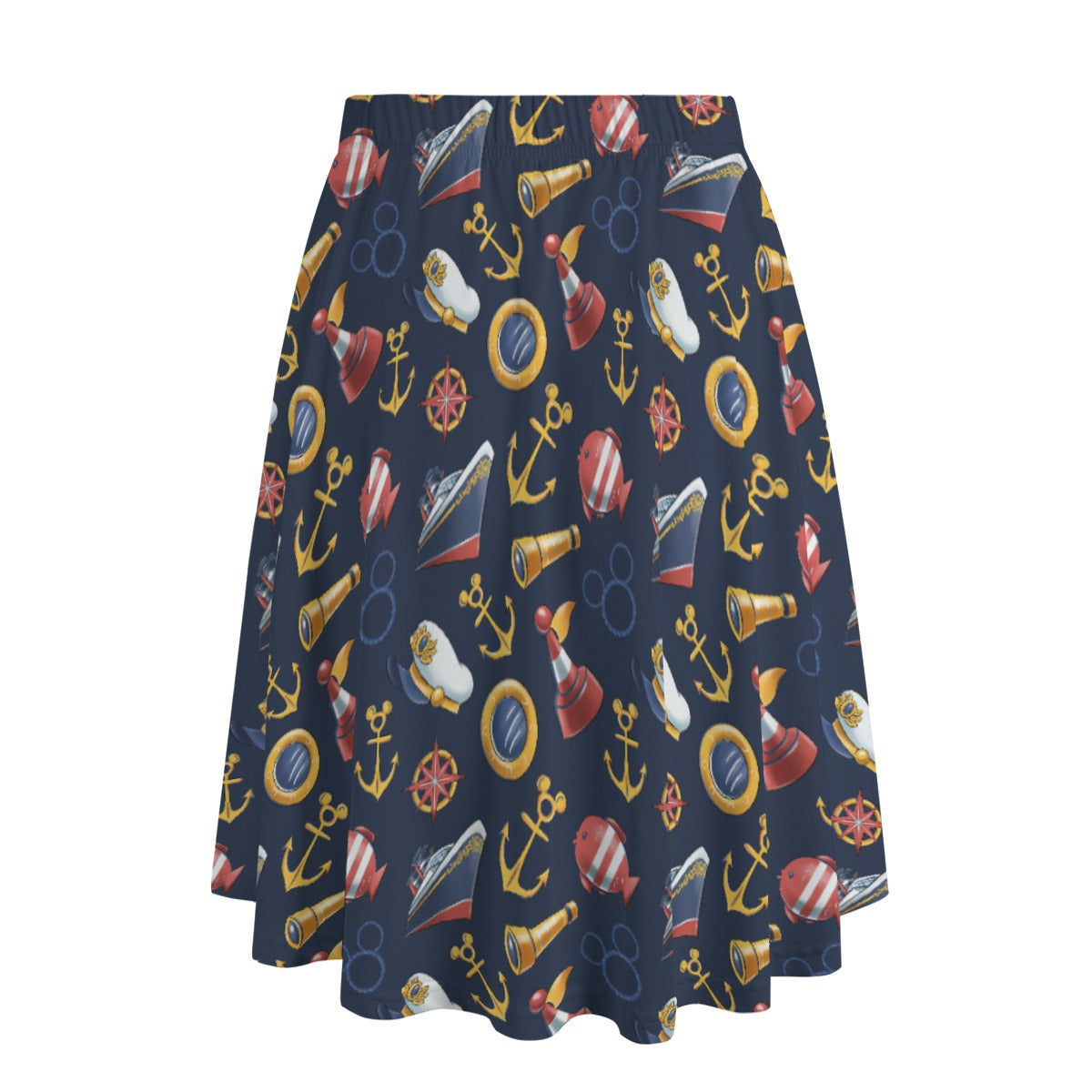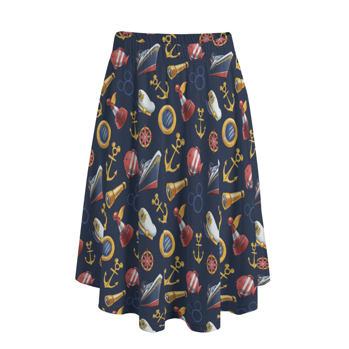 Mouse Ear Nautical Icons - Women's Pocket Midi Skirt