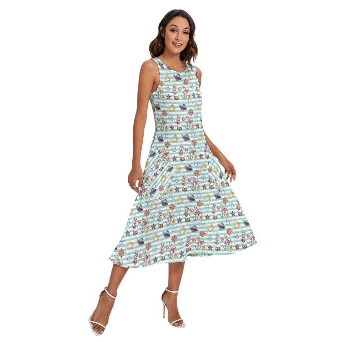 Clean lines, soft fabric, and standout style — our Women’s Diagonal Pocket Midi Dress is equal parts comfort and everyday charm. With a sleeveless cut, classic crew neckline, and relaxed A-line shape, it flatters without clinging and moves easily from day to night.