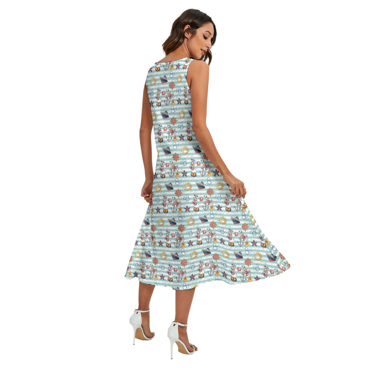 Anchors aweigh with this breezy striped print starring a sailor duo in their cutest outfits! Nautical stars, cruise ships, and whimsical floaties shaped like iconic ears make this a seaworthy style adventure from bow to stern.