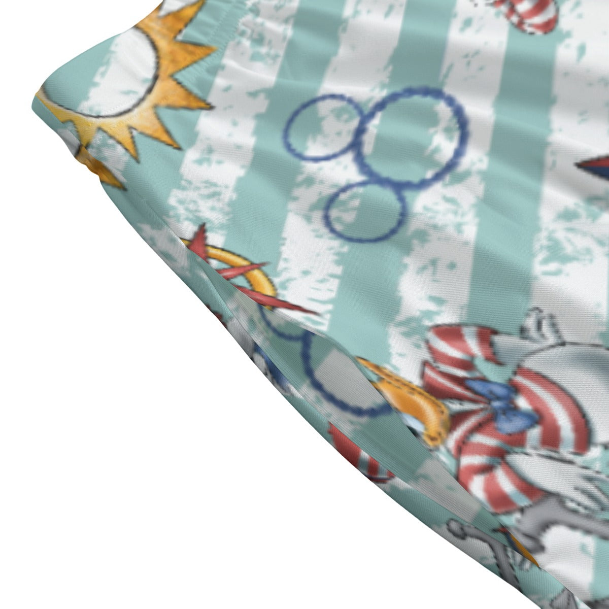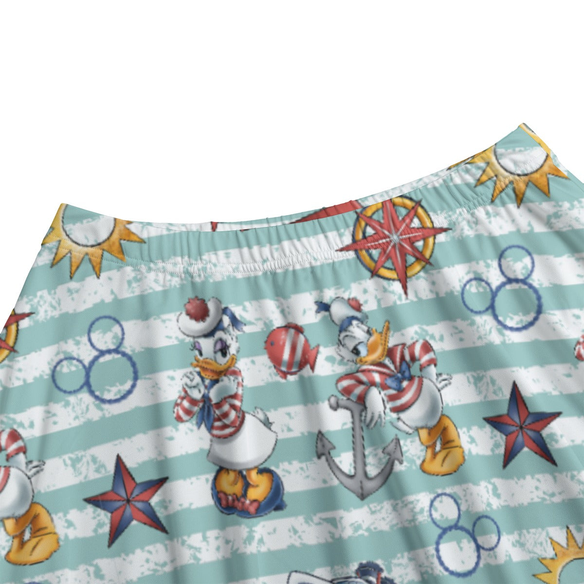 Anchors aweigh with this breezy striped print starring a sailor duo in their cutest outfits! Nautical stars, cruise ships, and whimsical floaties shaped like iconic ears make this a seaworthy style adventure from bow to stern.