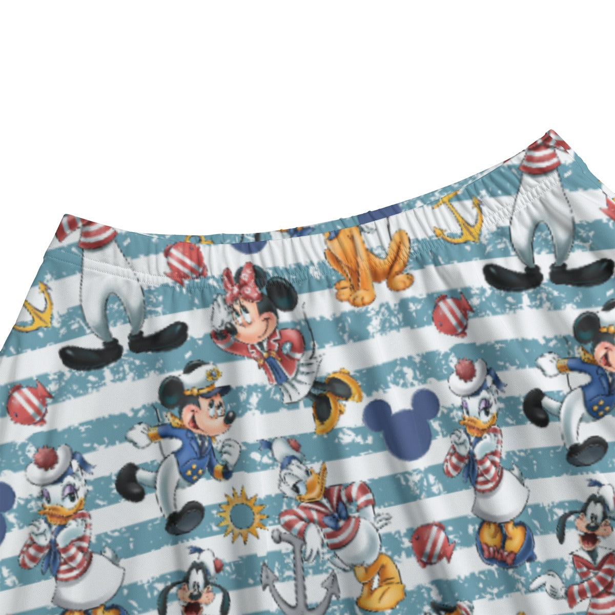 Anchors aweigh with this bold striped design featuring a full cruise crew decked out in their finest seafaring style. Sunny icons and whimsical ear-shaped touches add magic to any ocean getaway.