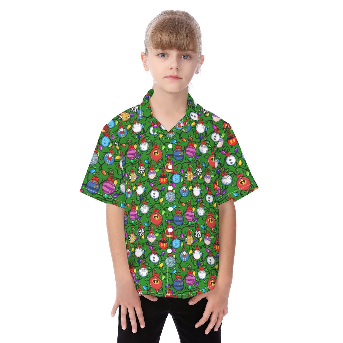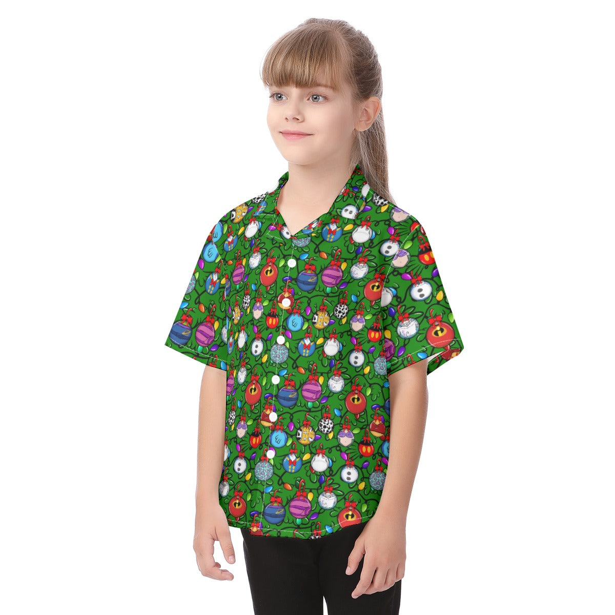 Festive Character Baubles on Green - Kid's Hawaiian Button Up Shirt
