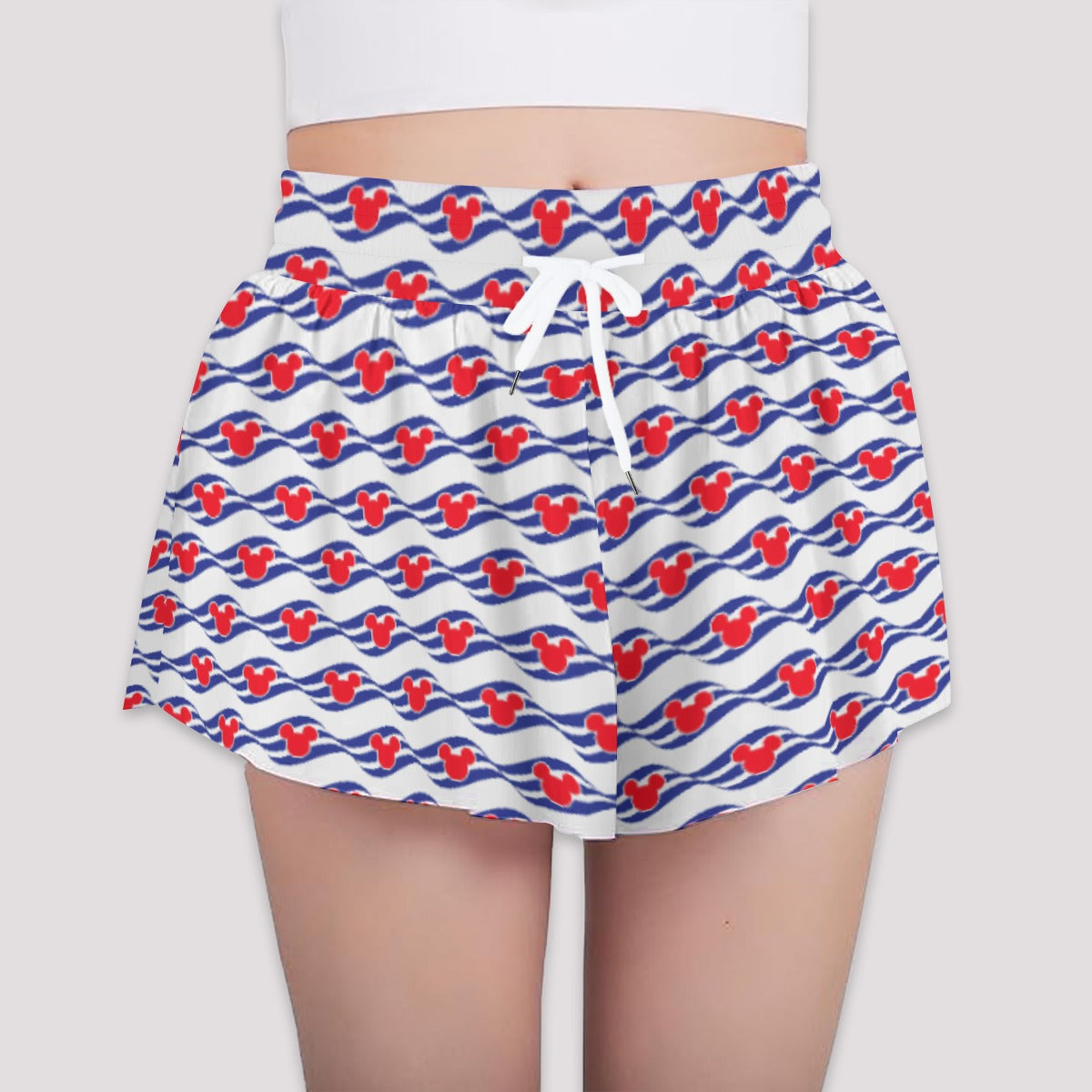 Anchors aweigh with this crisp nautical print featuring bold red mouse-ear silhouettes floating atop navy wave stripes. A shipshape design perfect for fans of ocean adventures and maritime dreams.