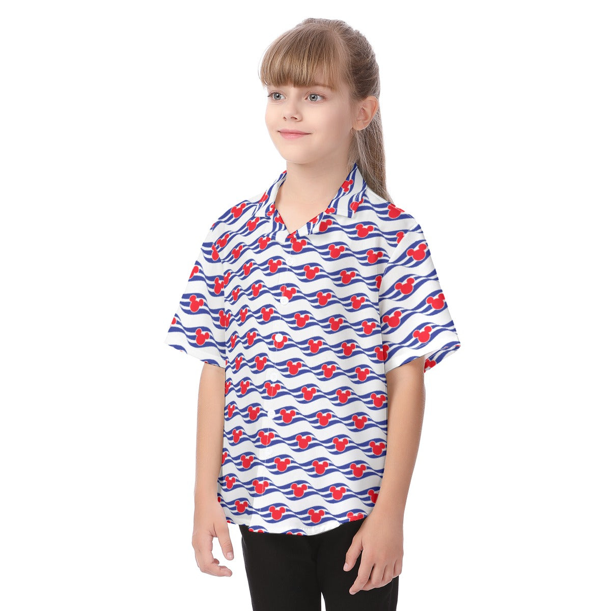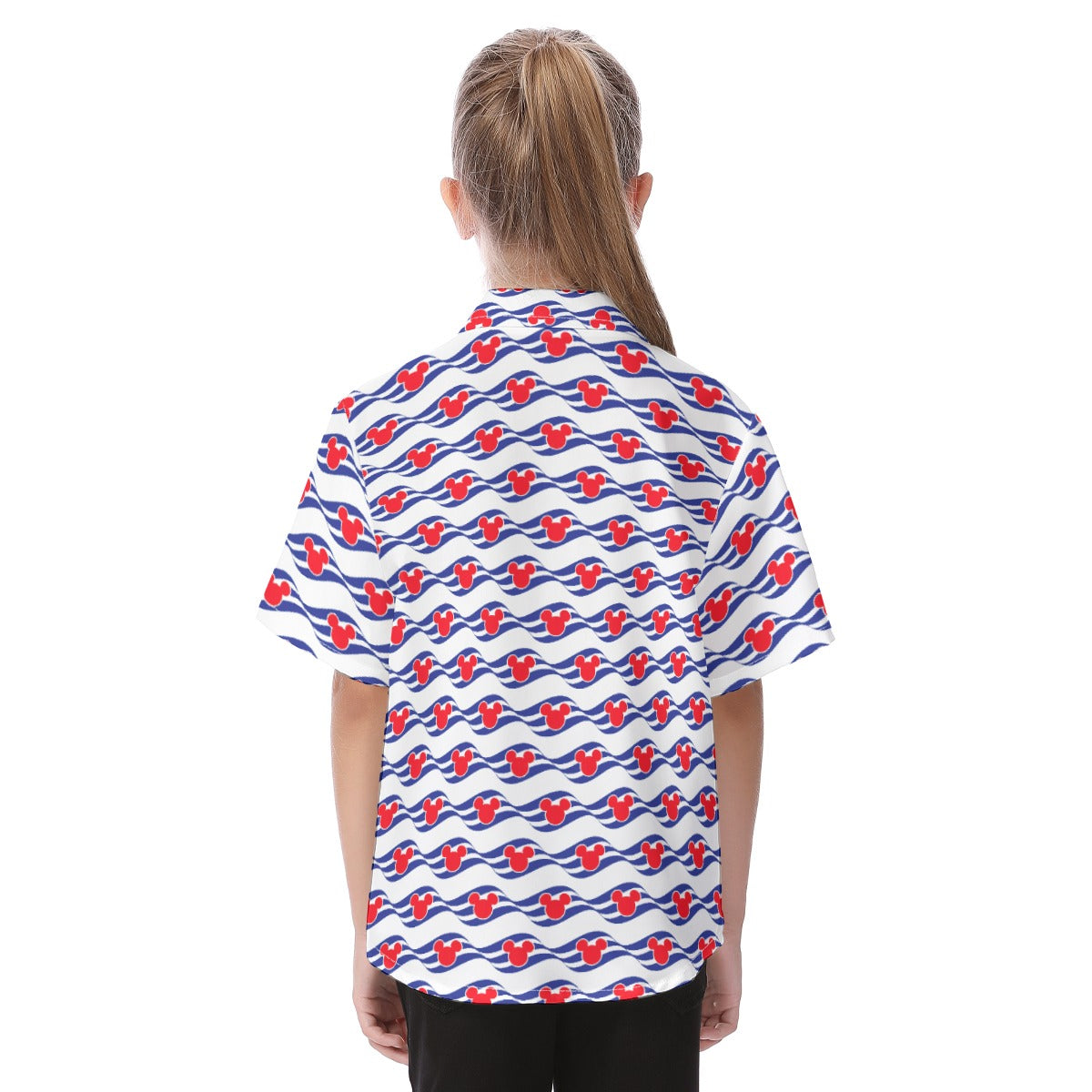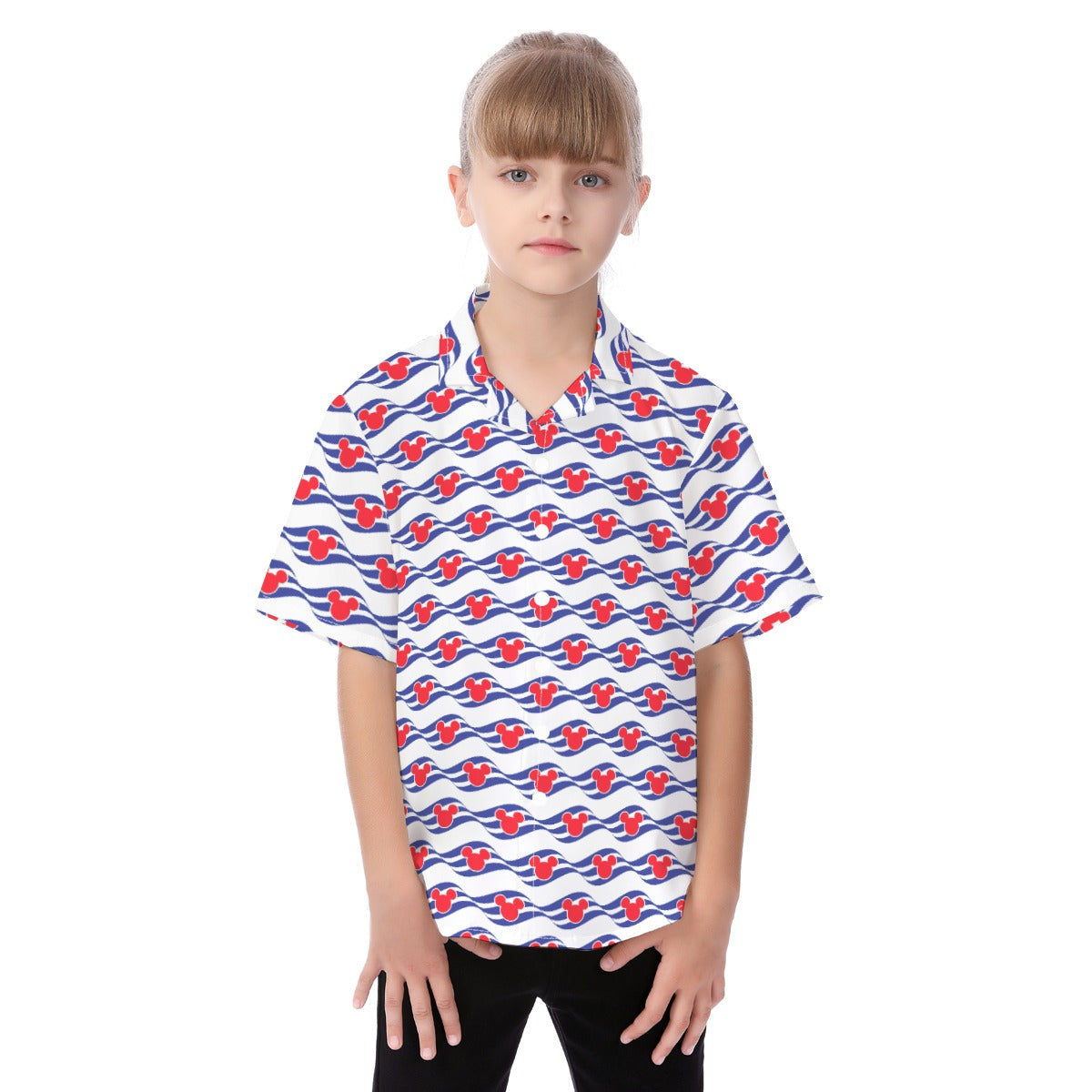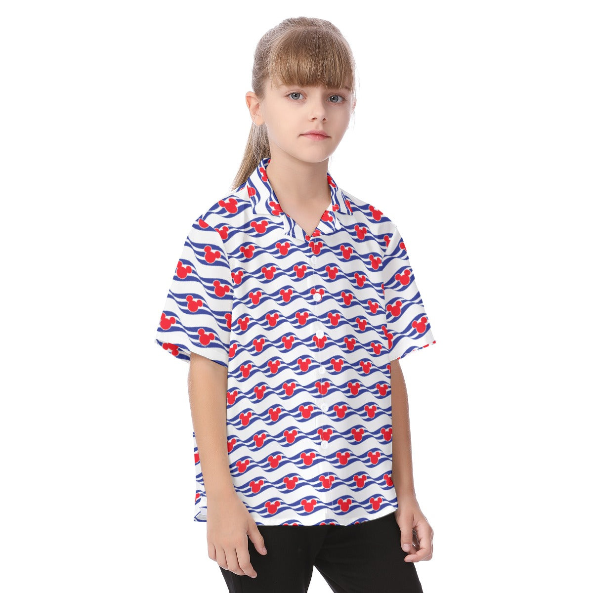 Nautical Cruise Logo Print - Kid's Hawaiian Button Up Shirt