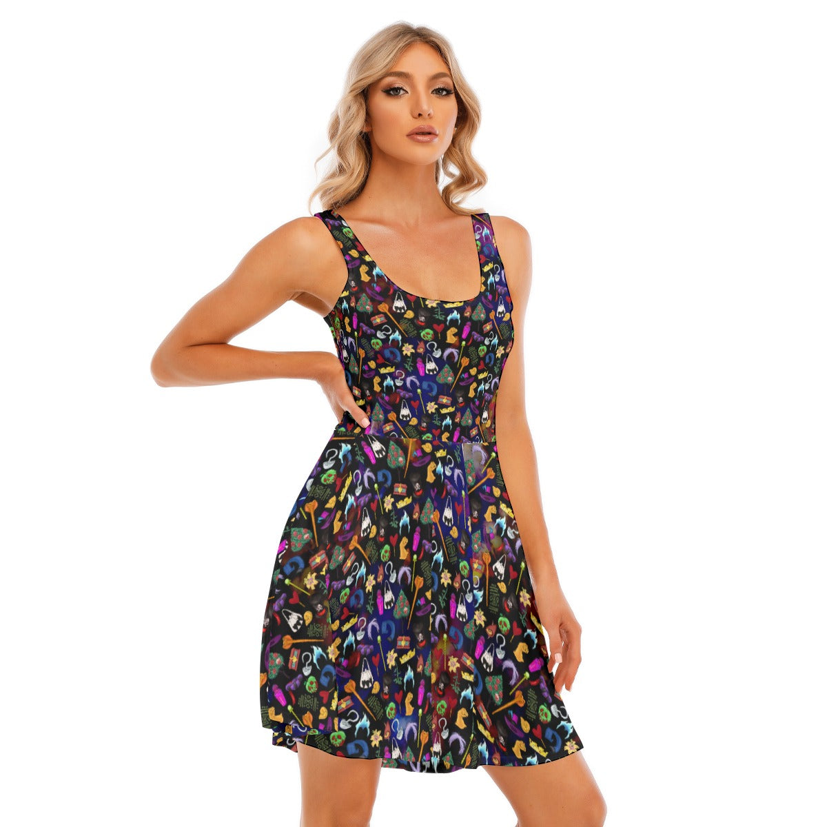Easy, breezy, and designed for everyday magic – our Women’s Sleeveless Pocket Skater Dress is perfect for sunny theme park days, casual adventures, and effortless style. It features a soft scoop neckline (front and back), wide straps for comfort, and a fitted waist that flares into a playful skater skirt.