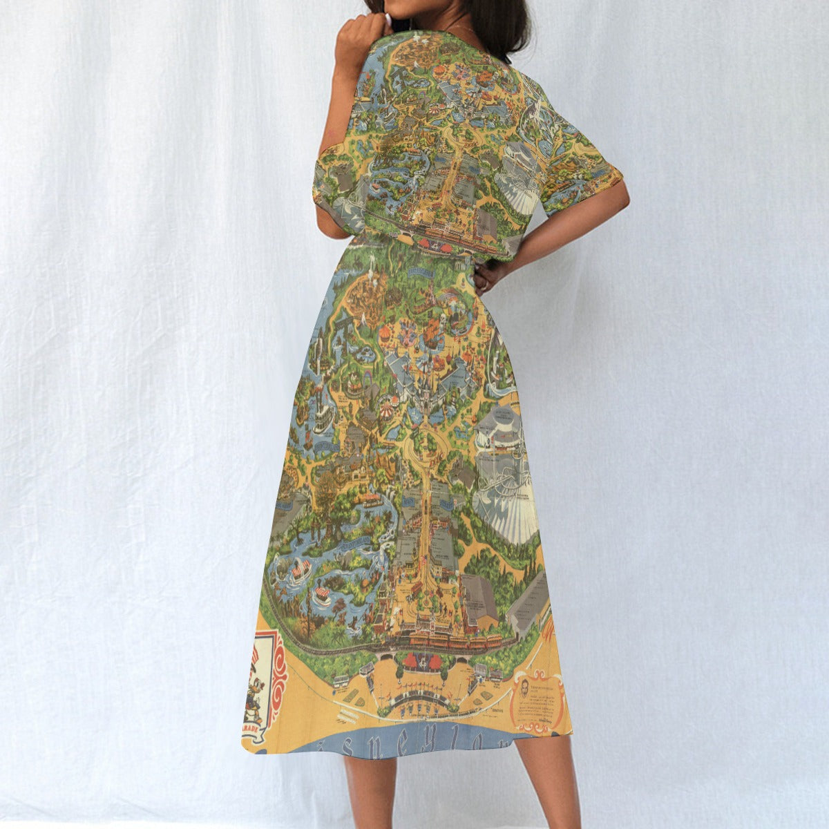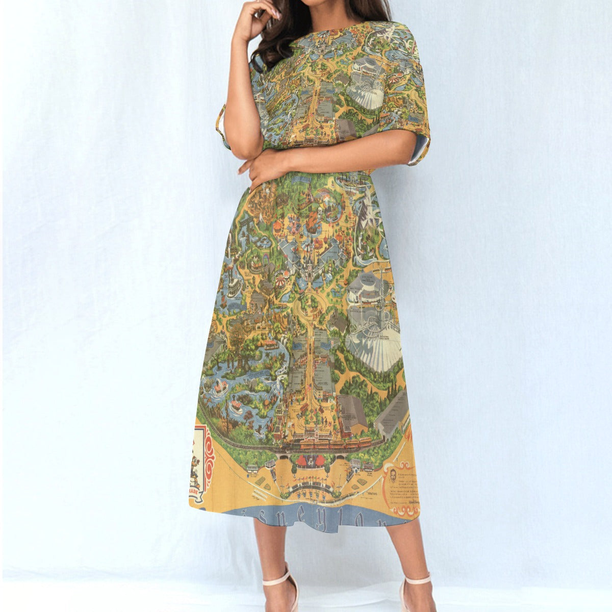 Vintage Theme Park Map - Women’s Elastic Waist Pocket Midi Dress