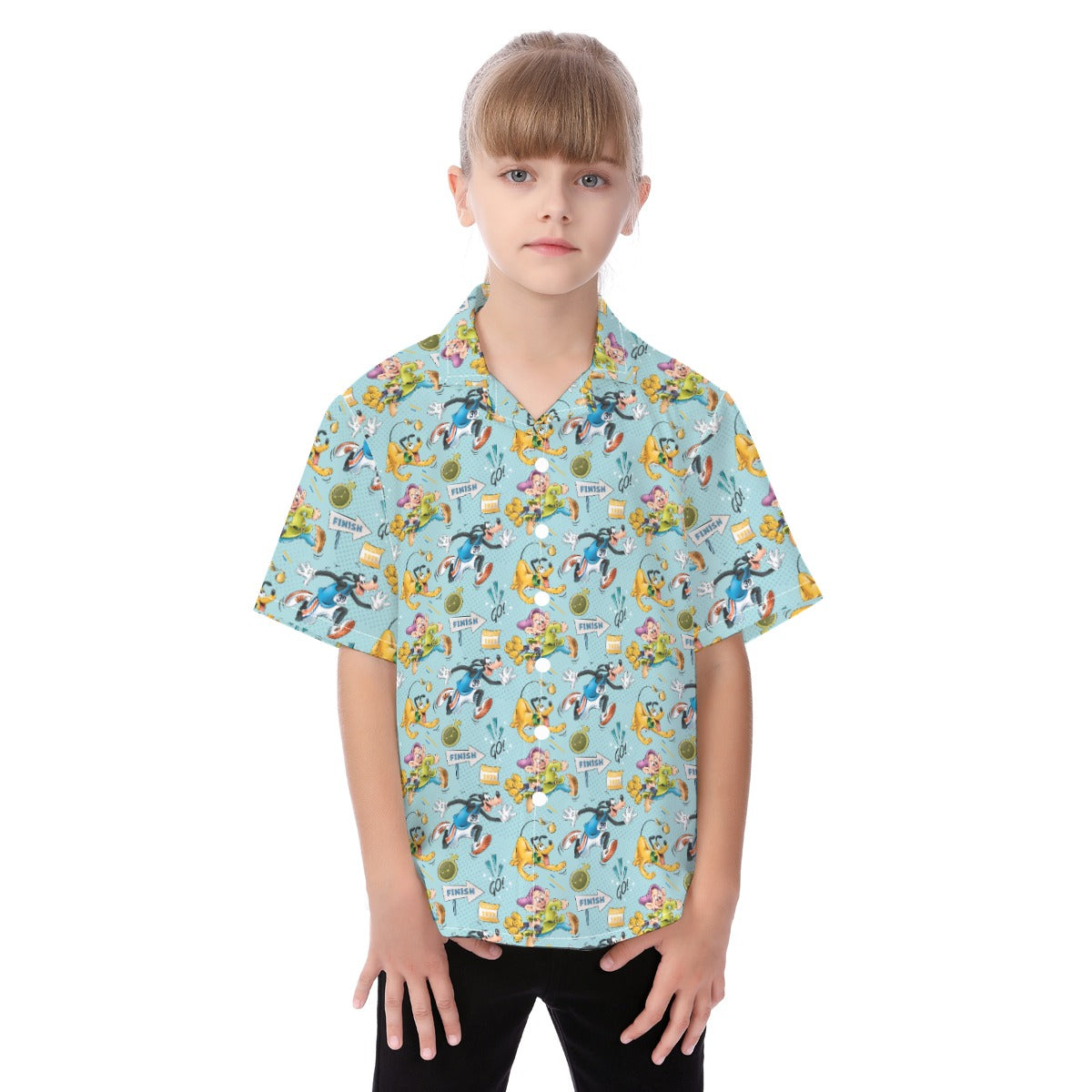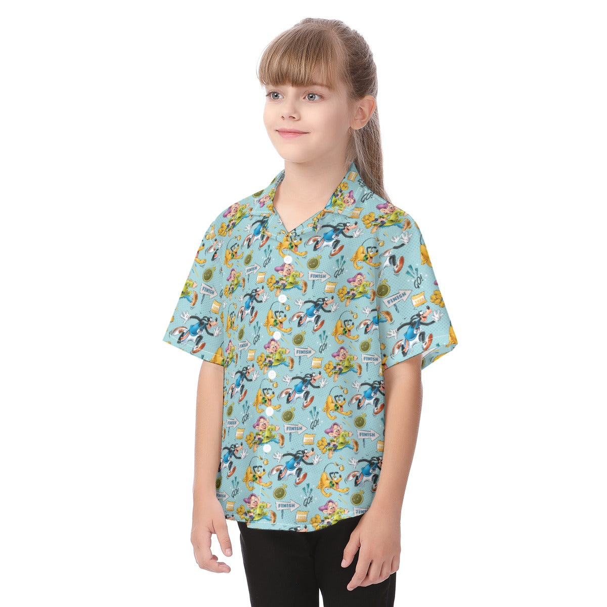 Cheerful Race Day Dashers - Kid's Hawaiian Button Up Shirt