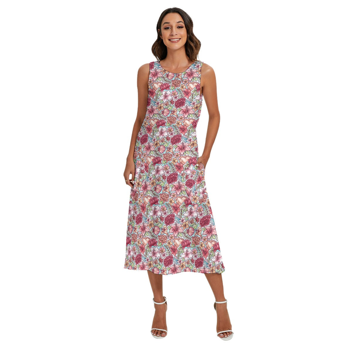 Fairytale Florals – Island Princess - Women’s Diagonal Pocket Midi Dress