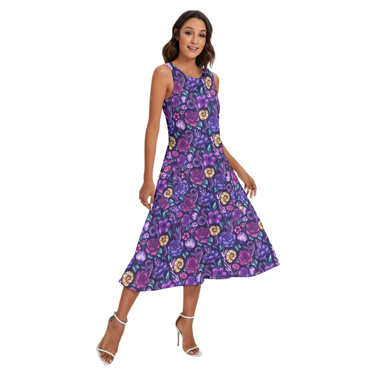 Embrace mysterious allure with this dramatic floral print from the Fairytale Florals series. Featuring rich purples, crimson roses, swirling tentacle motifs, and seashell accents, it conjures an undersea vibe full of bold elegance and oceanic mystery. Ideal for fans of striking, deep-sea inspired designs.