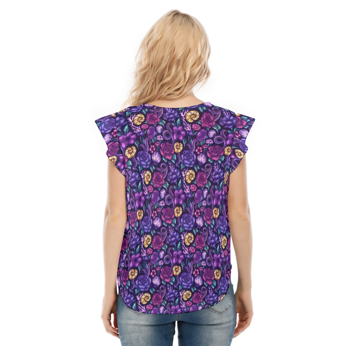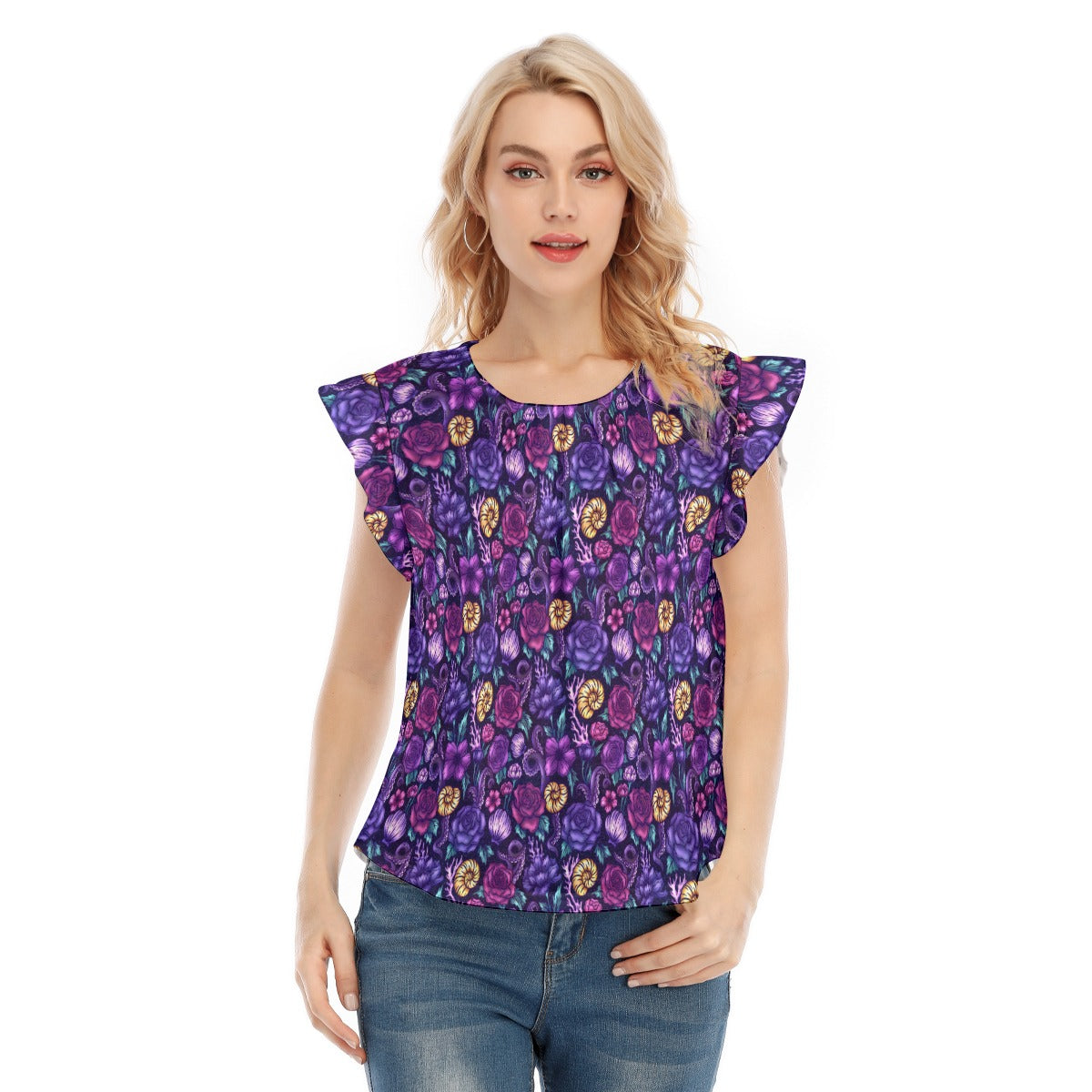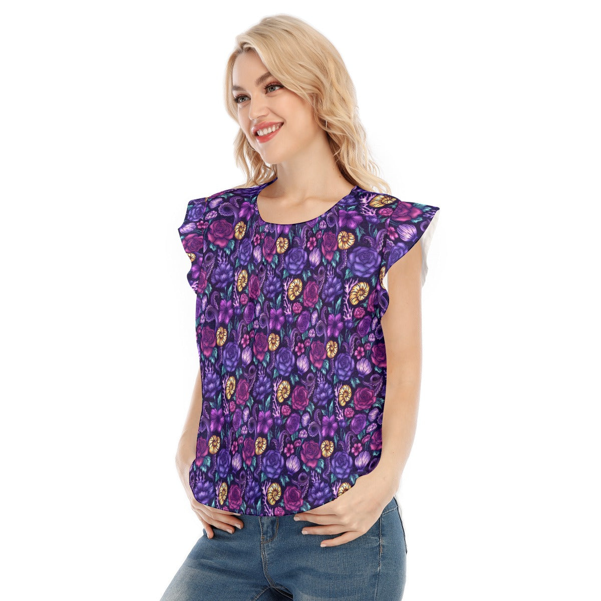 Fairytale Florals – Dark Sea Witch - Women’s Flutter Sleeve Top