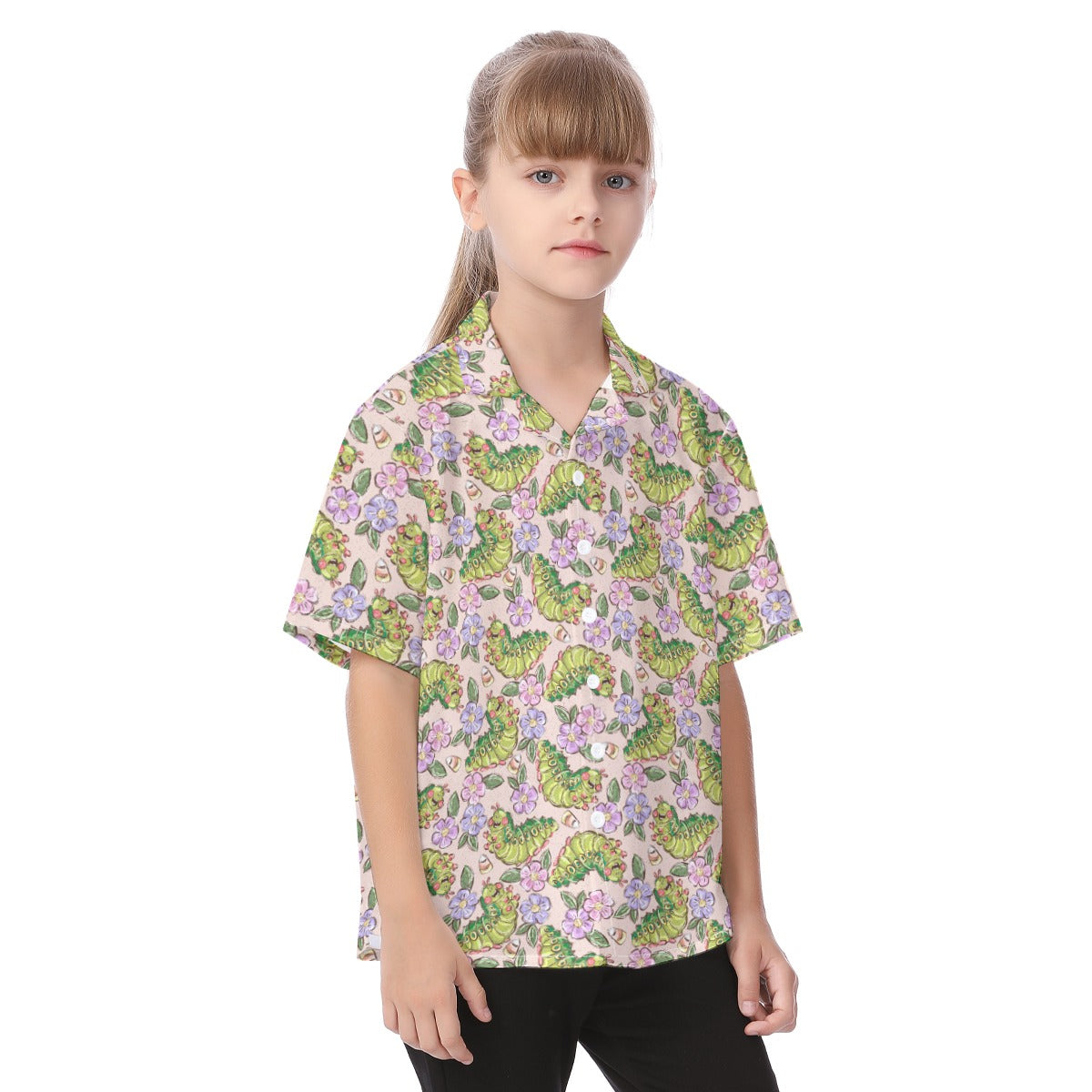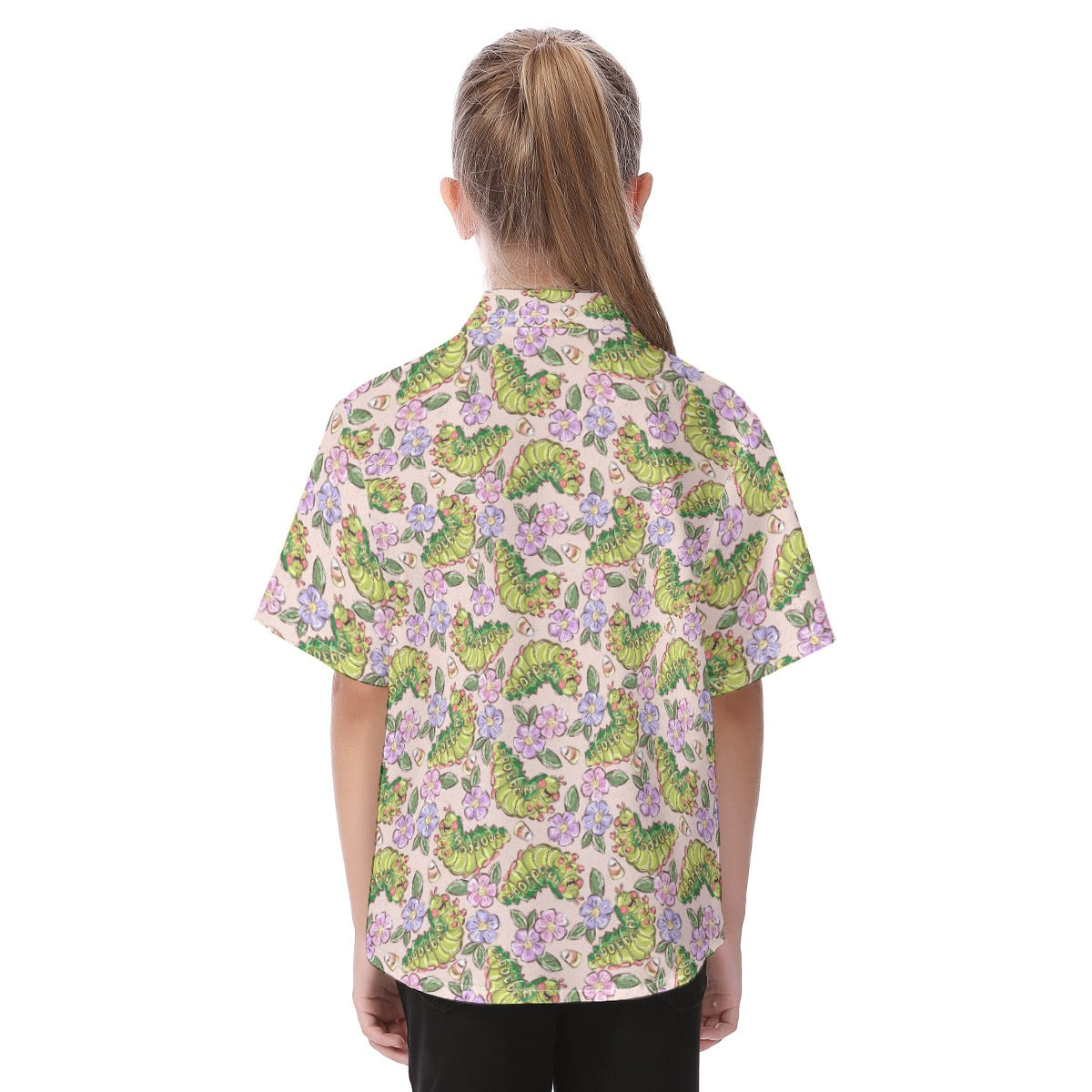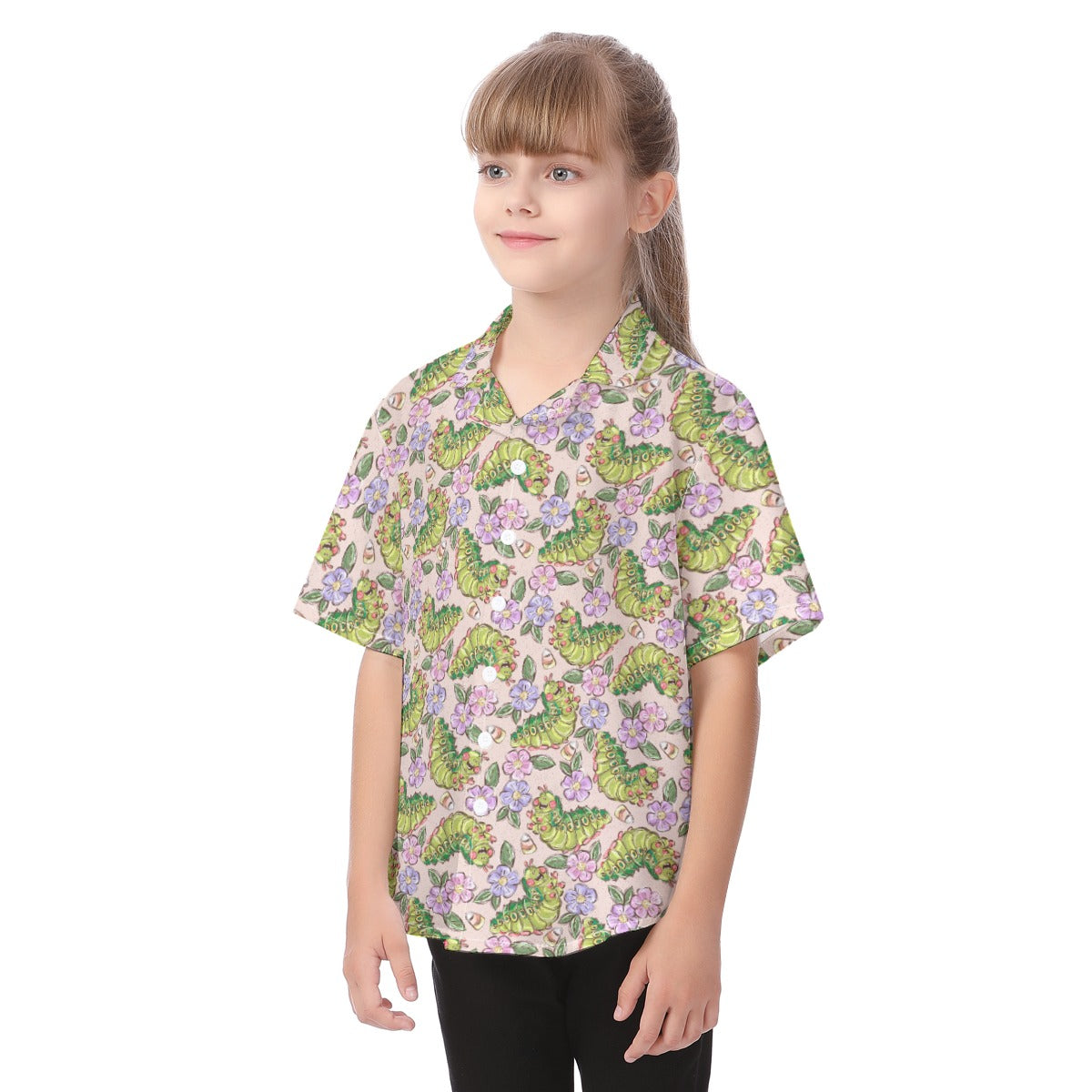 Cheerful Caterpillar Garden - Kid's Hawaiian Button Up Shirt
