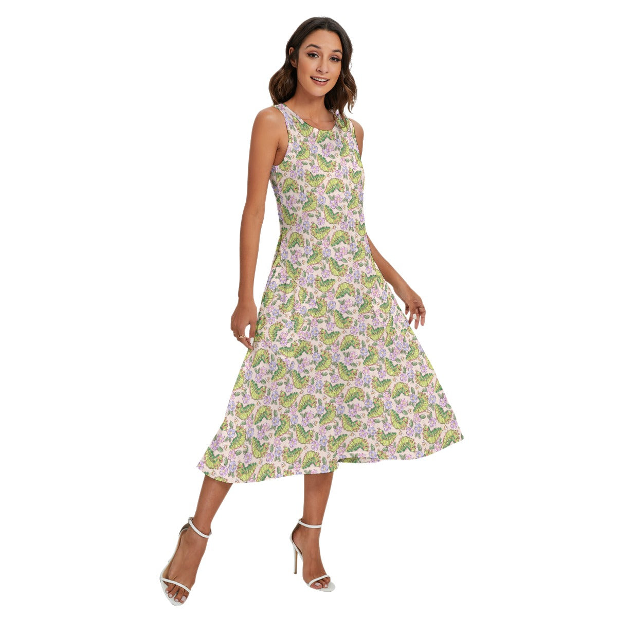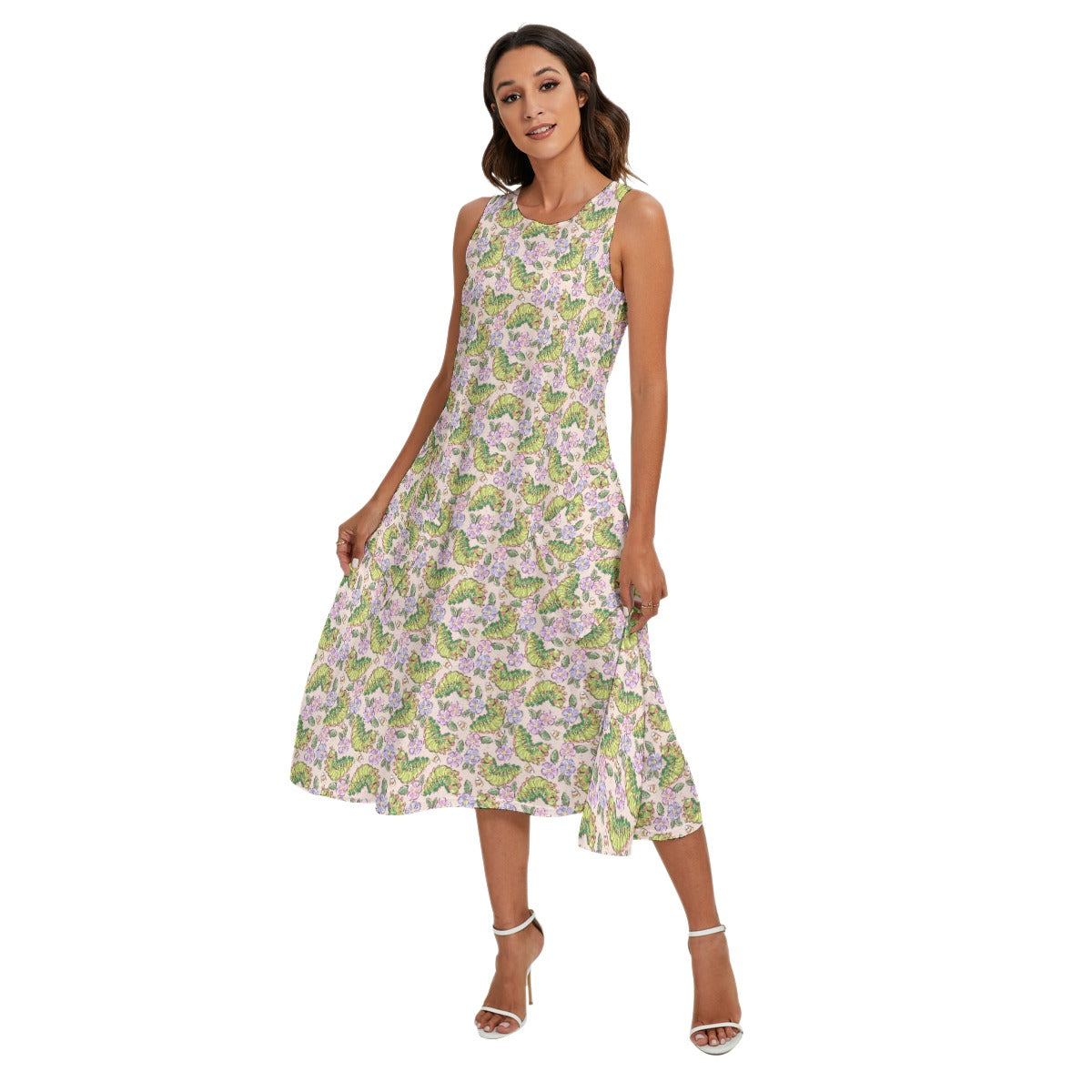 Cheerful Caterpillar Garden - Women’s Diagonal Pocket Midi Dress