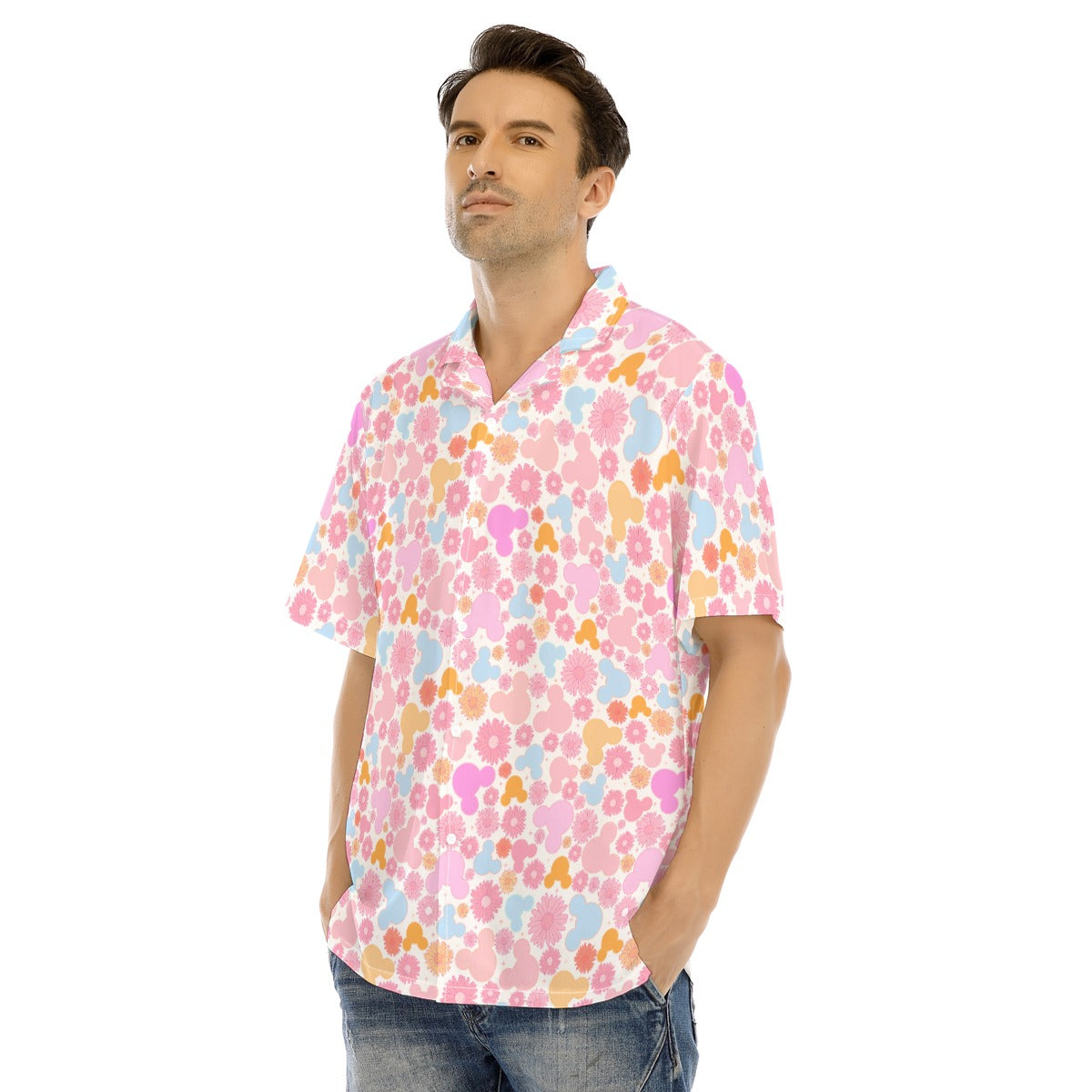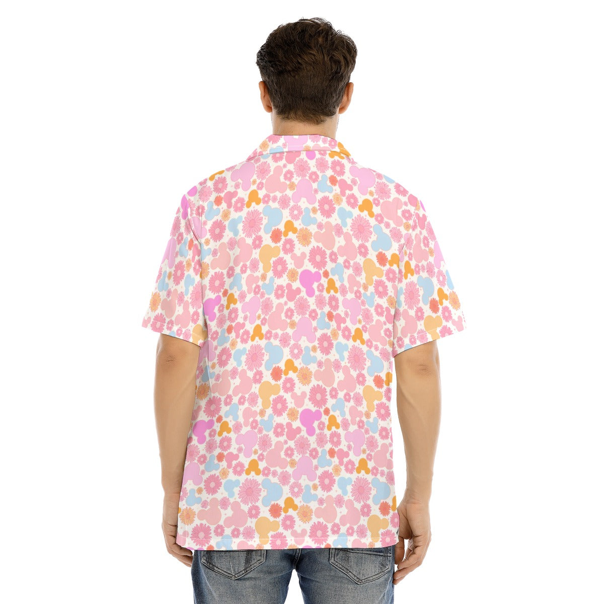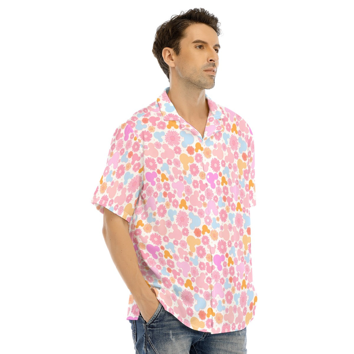 Retro Floral Mouse - Men's Hawaiian Button Up Shirt