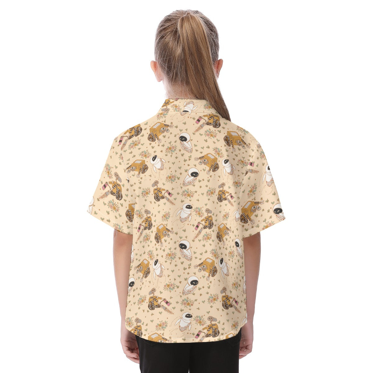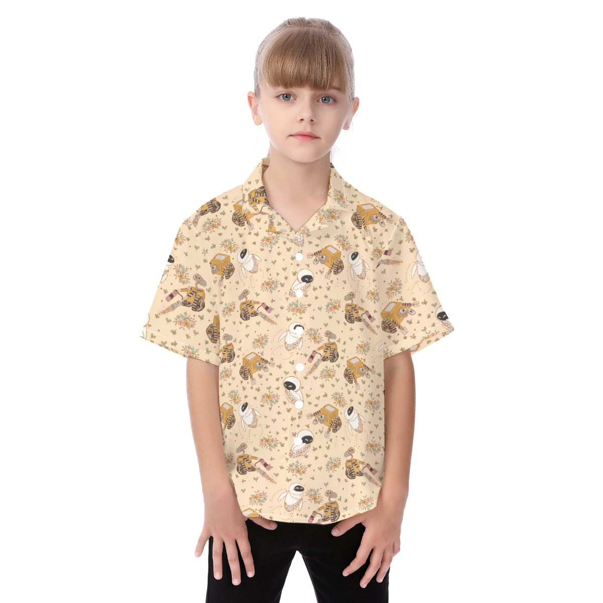 Botanical Robot Love Story - Kid's Hawaiian Button Up Shirt